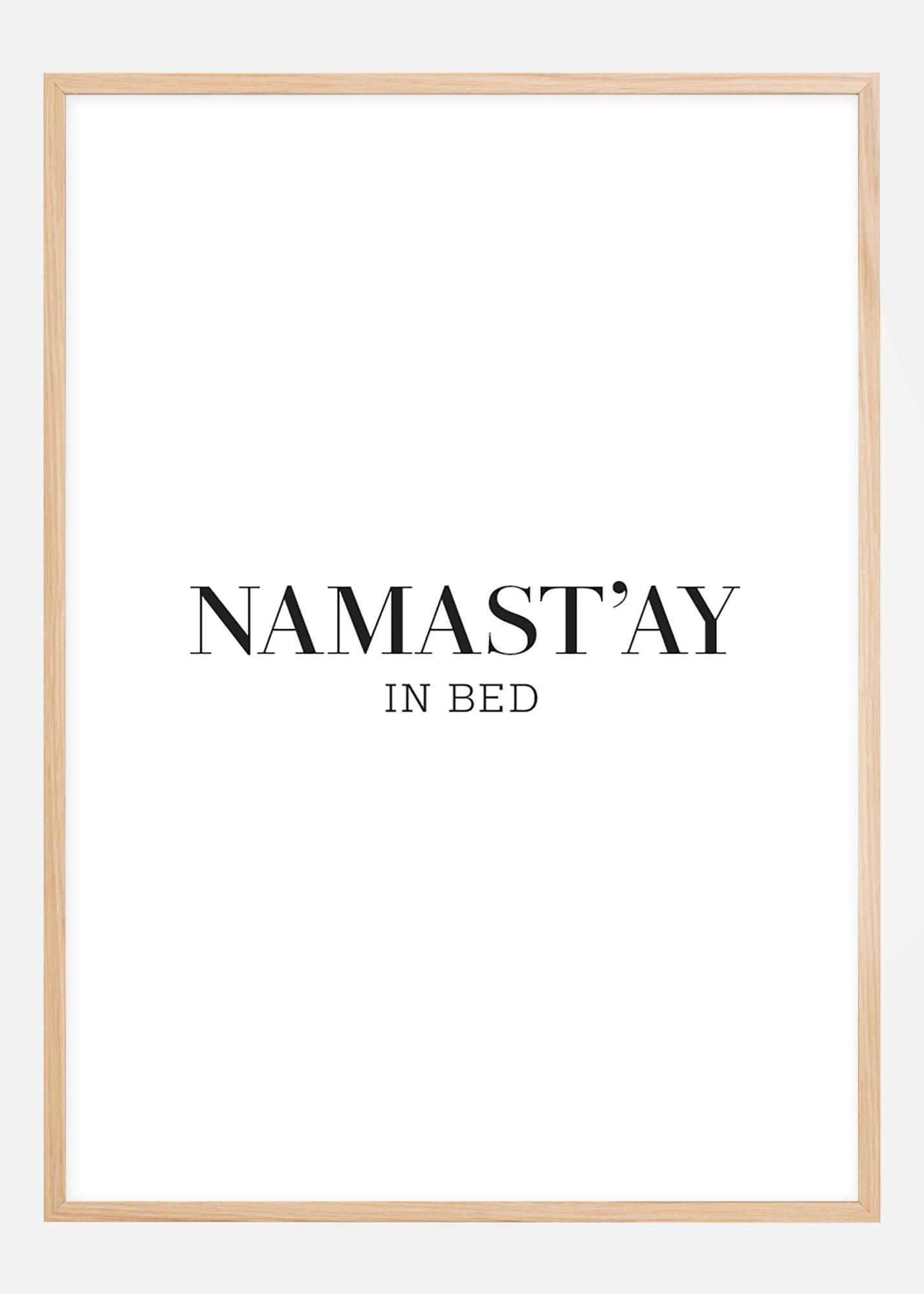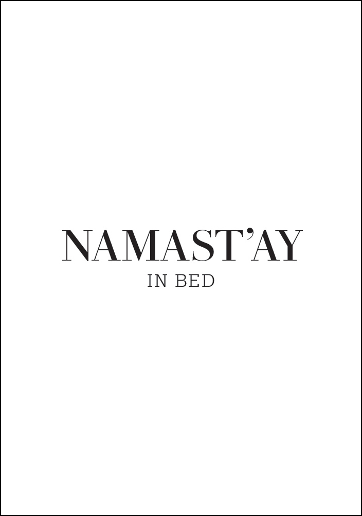 Un poster di testo in grandi lettere nere con il messaggio "Namast'ay in bed". Un poster leggero e ispiratore, perfetto da combinare con altri preferiti sulla parete della camera da letto. Adatto a tutte le case e stili di arredamento.