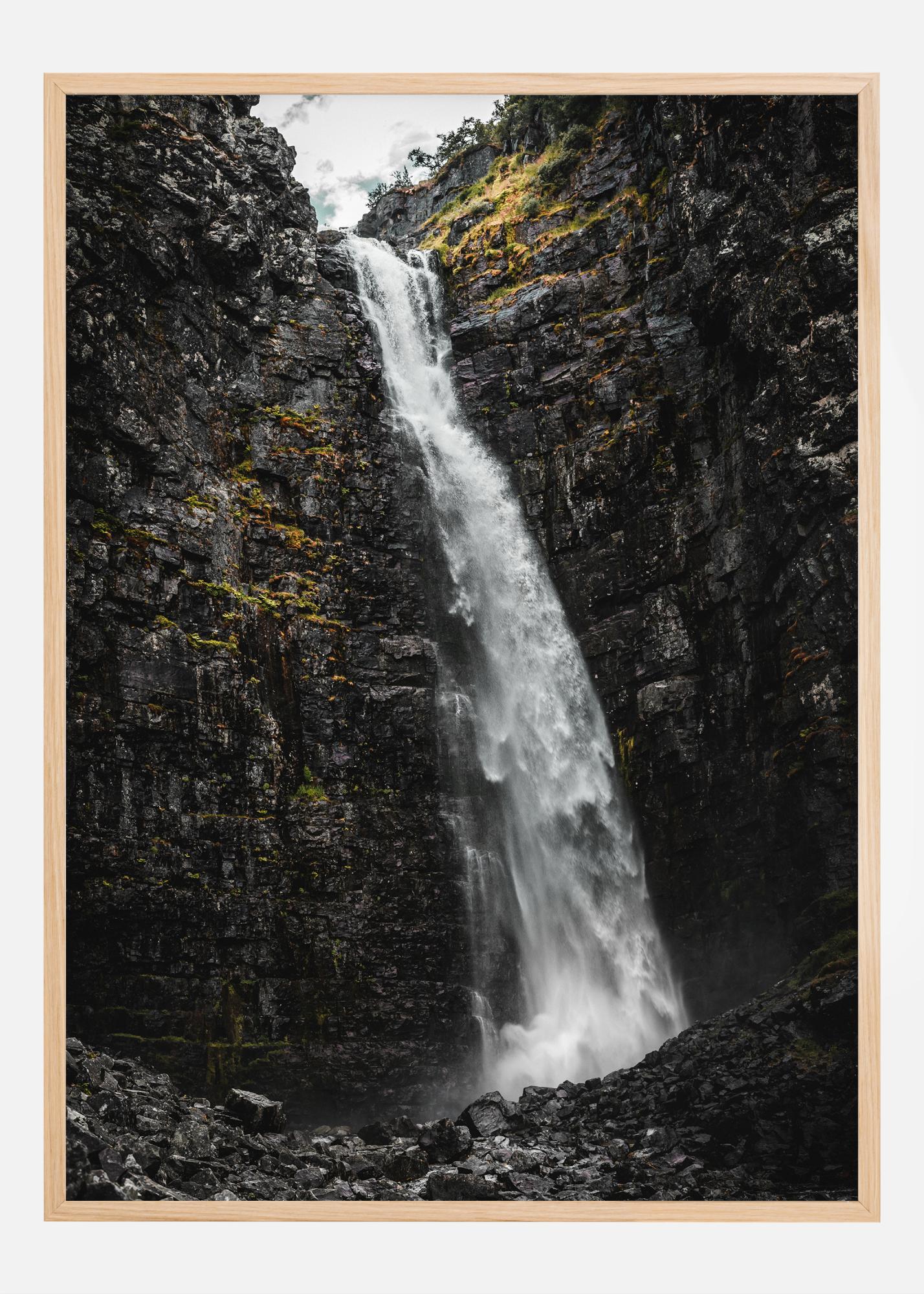 Questo suggestivo poster raffigura Njupeskär, la cascata più alta della Svezia, che scorre drammaticamente lungo una scogliera ricoperta di pietre. La stampa mostra il potente movimento della cascata e l'acqua fredda e limpida che collide con le rocce sottostanti. La cascata è circondata da scogliere scure, quasi nere, che contrastano con la schiuma bianca, mentre una morbida vegetazione si aggrappa alle superfici delle pietre. Questo è un manifesto che trasmette una sensazione della forza e bellezza grezza della natura ed è un'aggiunta ideale per chiunque apprezzi le meraviglie della natura.