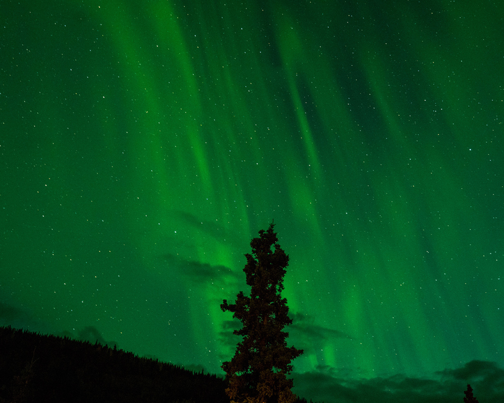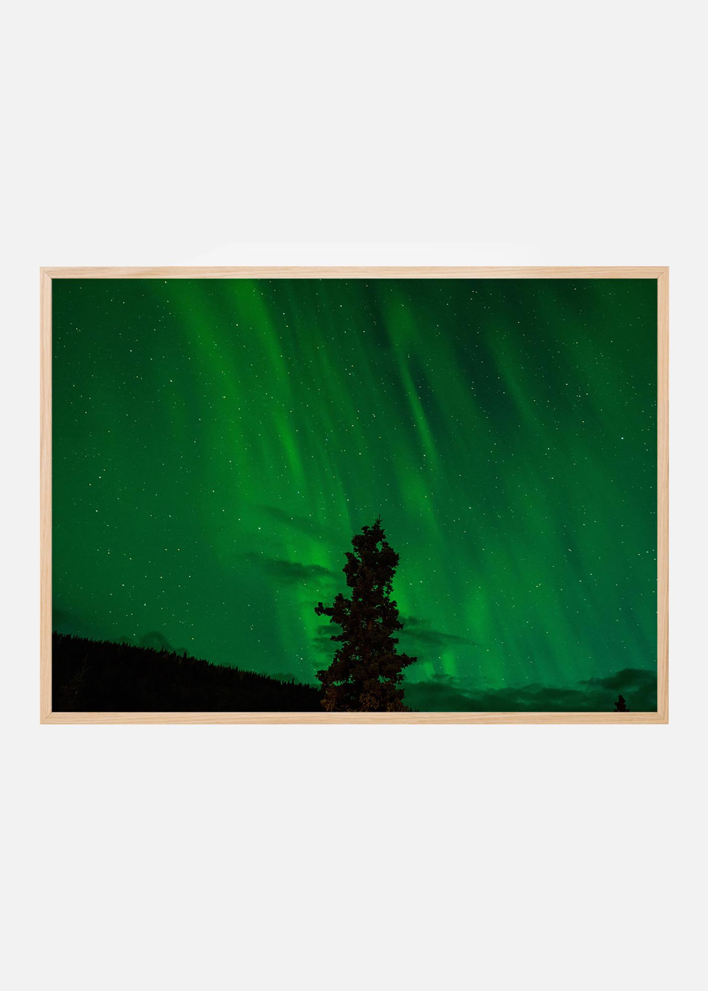 La capacità dell'aurora boreale di affascinare non finisce mai, è uno dei magnifici fenomeni della natura. Una fotografia quasi astratta con una chiara luce verde è un'opera d'arte che davvero si fa notare sulla parete e merita lo spazio che richiede. Si adatta ad essere appesa da sola o combinata con altre forti motivazioni grafiche che non scompaiono accanto.