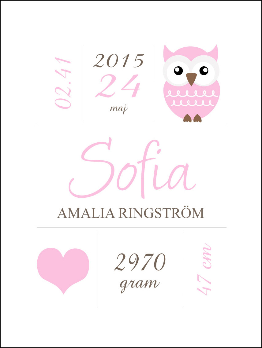 Owl Birth Poster Pink (21x29,7 cm (A4))