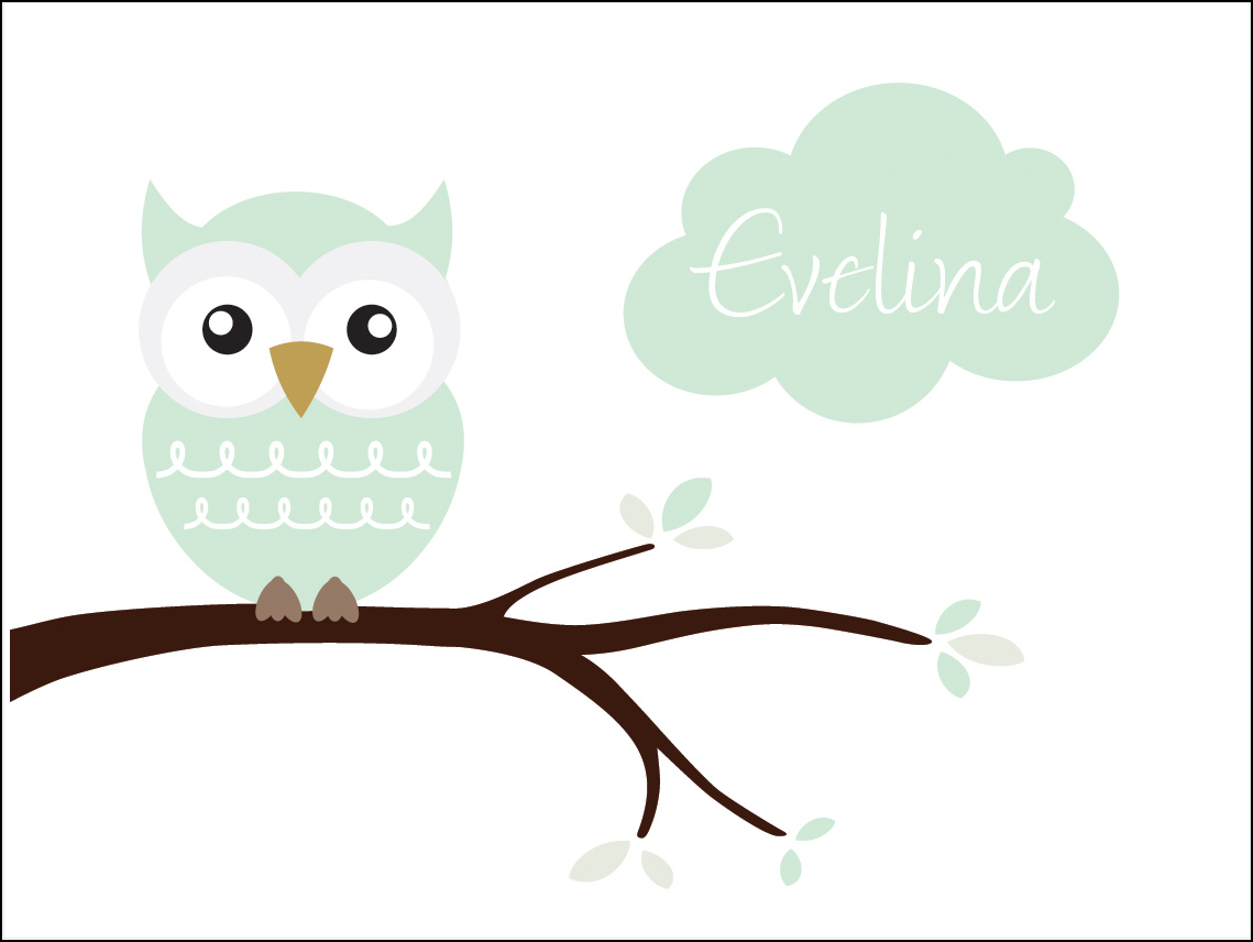 Owl Name Poster Light Green (21x29,7 cm (A4))