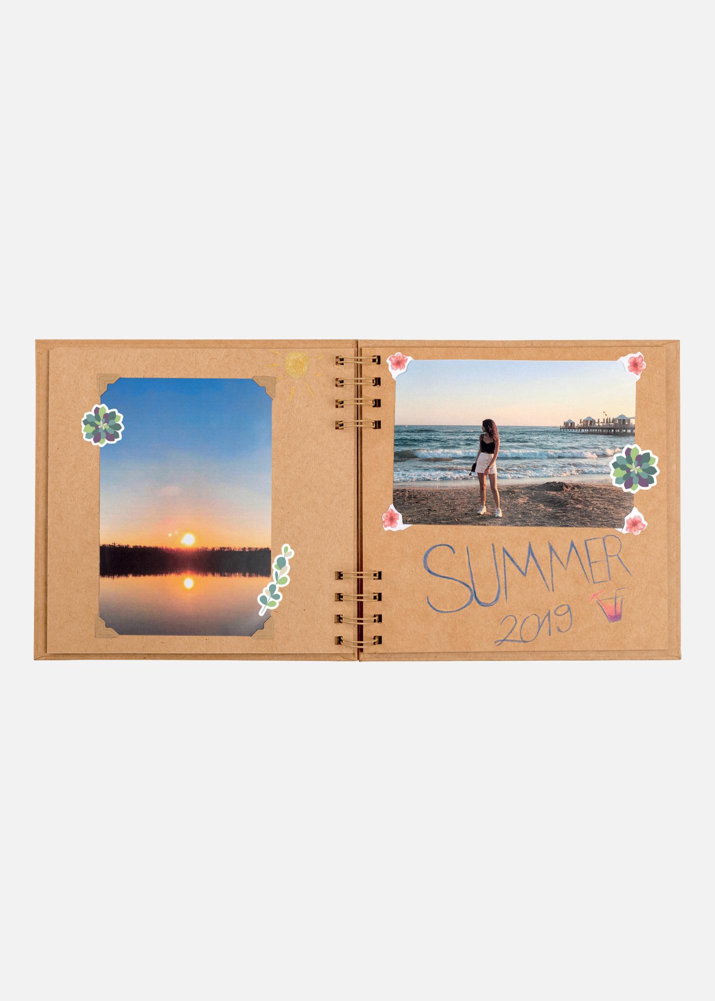 L'album ha 30 pagine, che corrispondono a 15 fogli, e offre ampio spazio per incollare le tue foto preferite. Le pagine marroni creano uno sfondo caldo e accogliente che mette in risalto le tue foto nel miglior modo possibile. Il design a spirale rende facile sfogliare l'album e offre una gestione flessibile quando crei il tuo racconto personale.