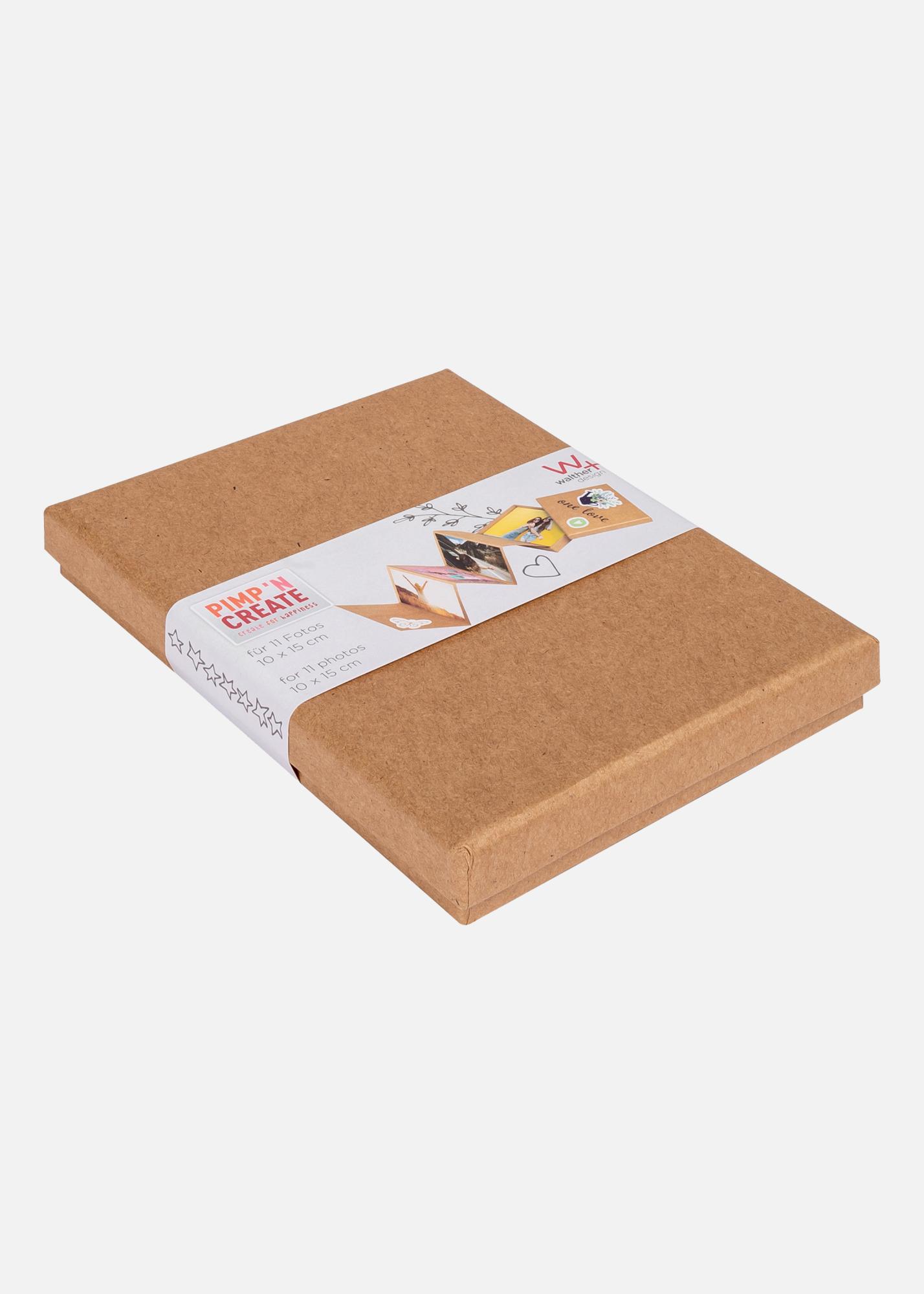 PAC Leporello-Box Marrone è un elegante album a fisarmonica progettato per contenere 11 foto della dimensione di 10x15 cm. La copertina è realizzata in carta artigianale marrone con un interno marrone coordinato, che dona un tocco classico e senza tempo. Questo album è perfetto per raccogliere e mostrare i tuoi ricordi in modo elegante.