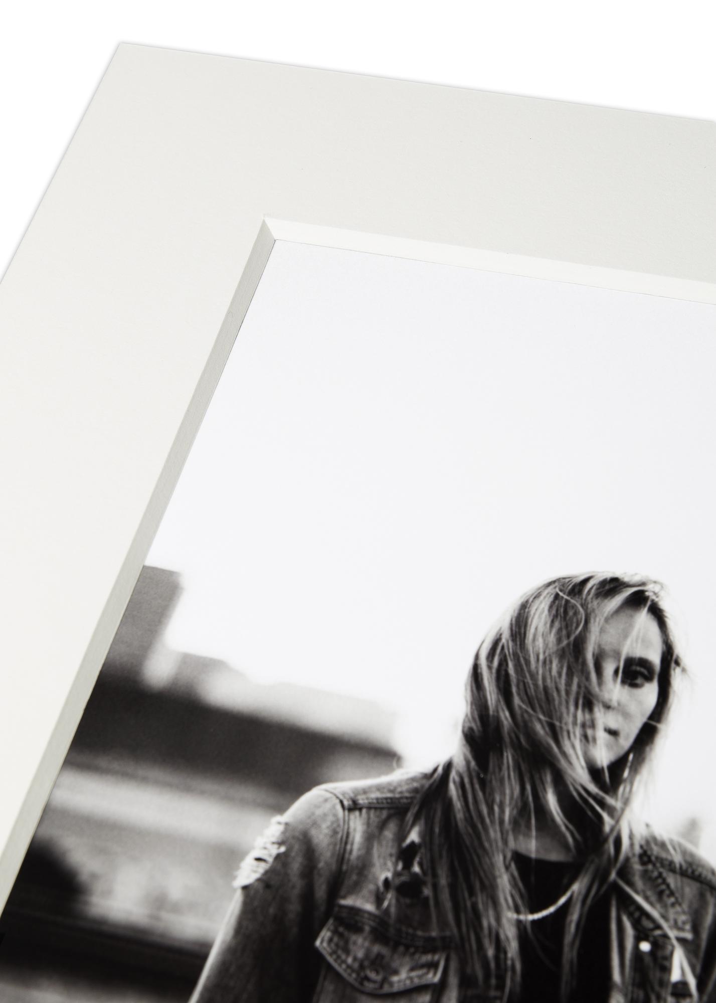 Questo passe-partout bianco viene prodotto su ordinazione nel nostro laboratorio - secondo le tue dimensioni desiderate. Il passe-partout è sia privo di acidi che PH neutro, e il materiale proviene da una gestione forestale sostenibile.