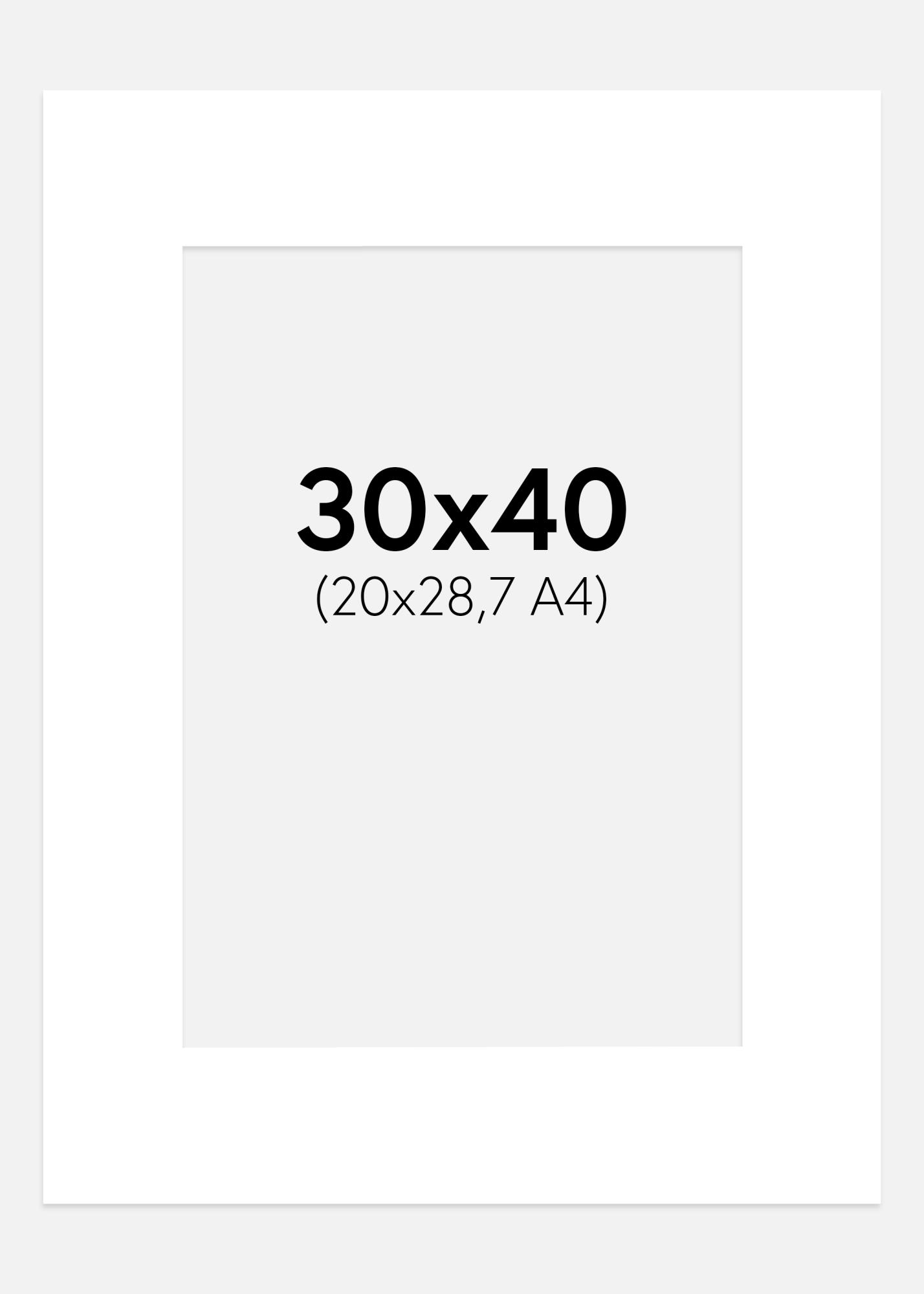 passe-partout SuperBianco mette in risalto l'immagine, con il suo colore bianco brillante e i bordi bianchi tagliati obliquamente vicino all'immagine. Un passe-partout bianco dona inoltre un aspetto arioso ed elegante! Si adatta a tutti i telai che vendiamo - ricorda solo che le dimensioni esterne del passe-partout devono essere le stesse delle dimensioni del telaio.
