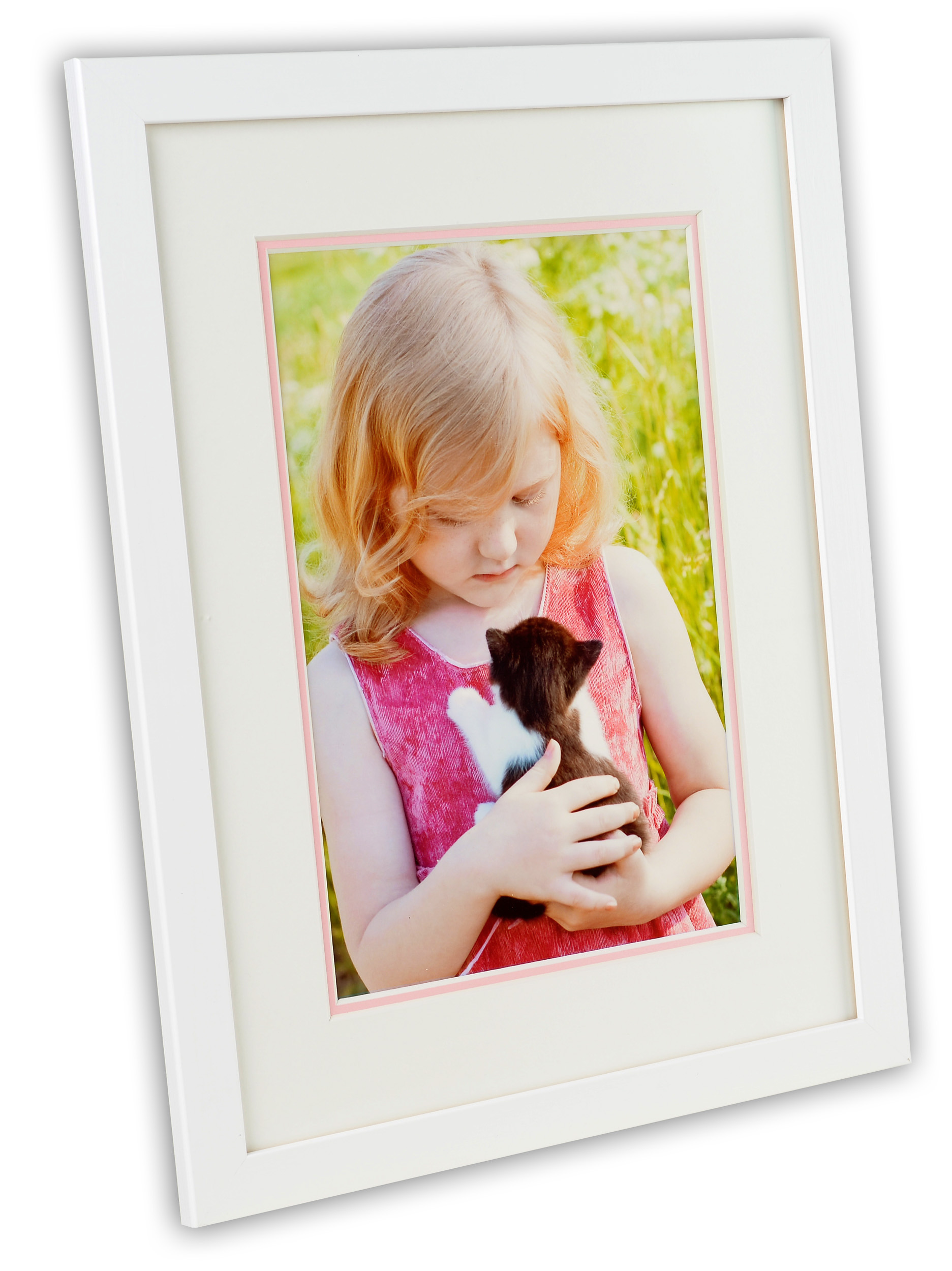 passe-partout su misura a due strati con un passe-partout bianco come base e uno strato inferiore rosa chiaro che crea un bordo colorato di 5 mm intorno all'immagine. Perfetto quando si desidera creare un incorniciatura d'impatto che mette in risalto la propria immagine e conferisce una maggiore profondità al soggetto. Tutti i nostri passe-partout hanno bordi tagliati con precisione a un angolo di 45 gradi, garantendo un'incorniciatura seria e professionale per le tue immagini.