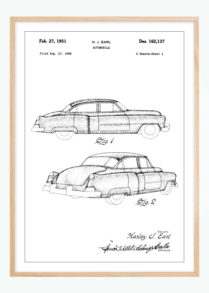 La locandina del brevetto mostra due diverse angolazioni dell'auto, che danno una sensazione delle sue dimensioni e del suo design. Questo tipo di disegno di brevetto non è solo una parte importante della storia tecnica, ma anche un elemento di arredo elegante per collezionisti ed appassionati. La purezza e l'eleganza del poster lo rendono un eccellente arricchimento per qualsiasi stanza e creano un argomento di conversazione per visitatori e ammiratori del design industriale classico.