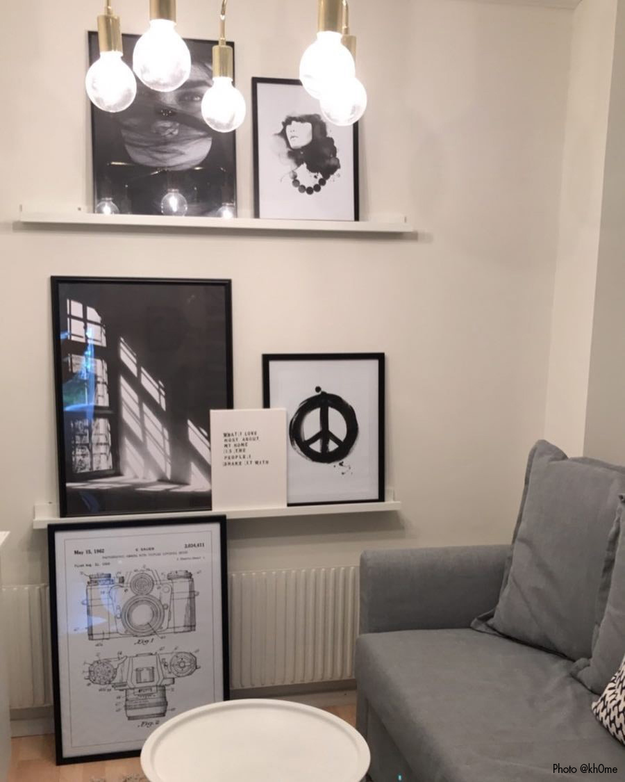 Poster alla moda che si abbinano ad altri motivi per creare una moderna galleria a parete.