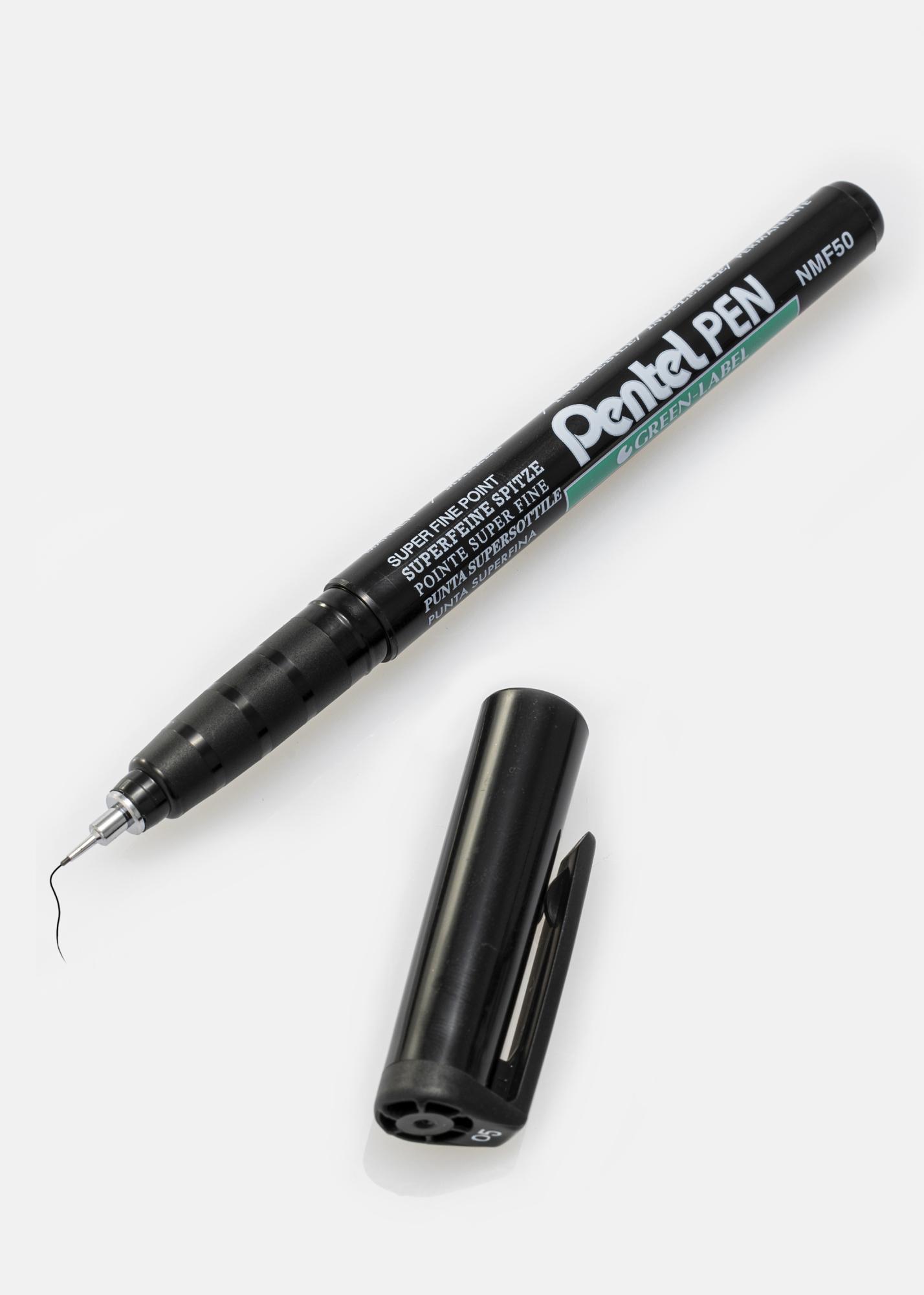 Penna nera sottile di Pentel con una larghezza di punta di 0,5 mm che dà un'impressione elegante.