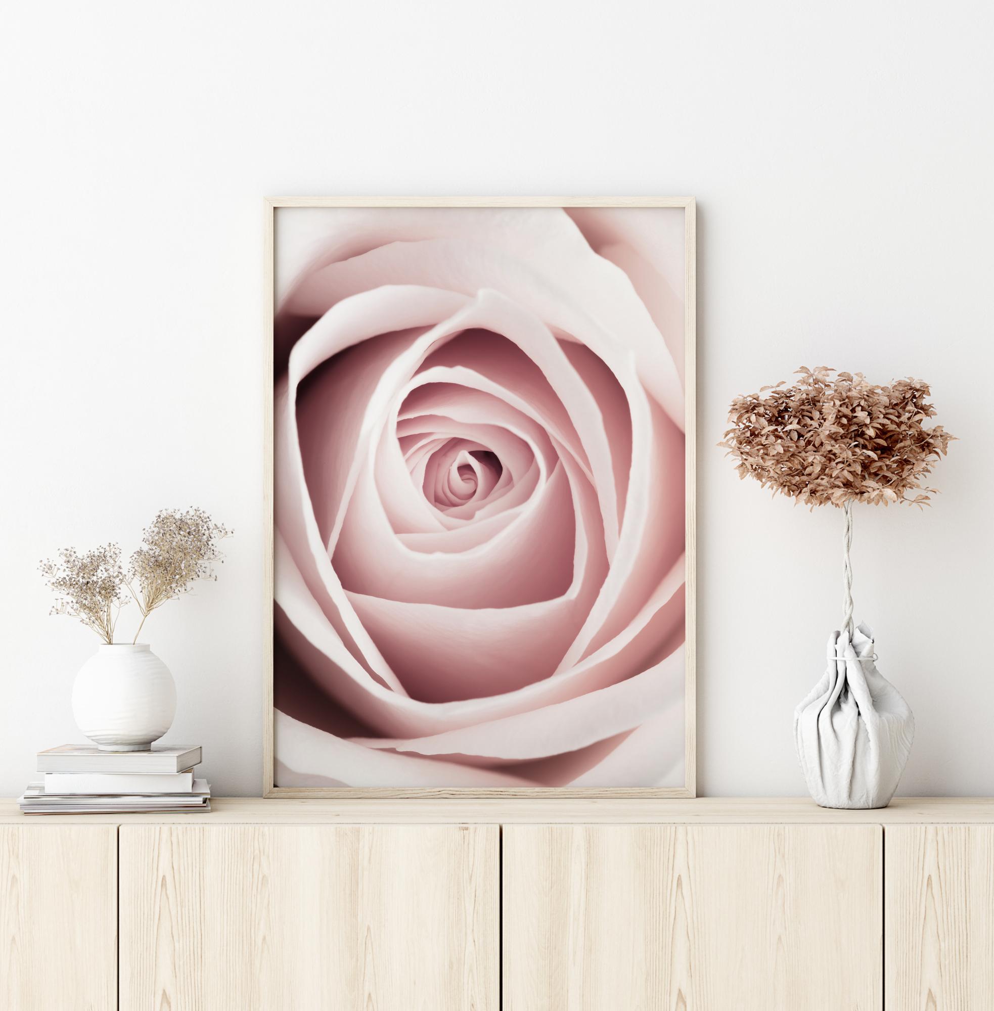Una stampa mozzafiato di un piccolo bocciolo di rosa rosa. Le belle tonalità morbide della rosa creano una sensazione di calore e profondità. Appendi questo delicato poster sulla parete della tua camera da letto e porta la bellezza di questo fiore nella tua casa.