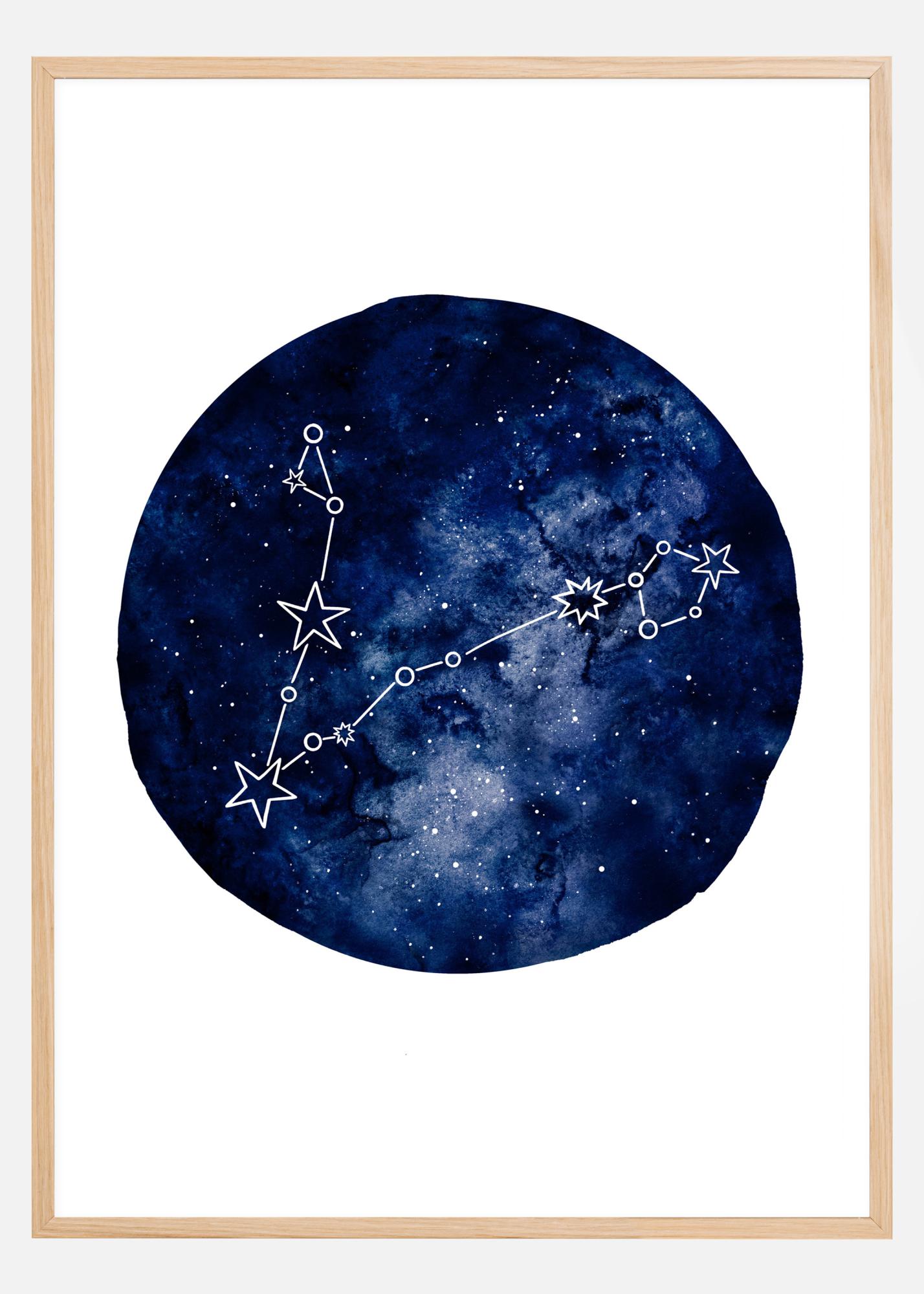 Una stampa astrologica incredibile che illustra il segno zodiacale dei Pesci. Su uno sfondo bianco, l'immagine blu scuro delle costellazioni è evidenziata chiaramente in bianco con cinque stelle. Un poster affascinante per tutti coloro che sono interessati all'astrologia o all'astronomia. Una stampa perfetta da appendere nel tuo studio.