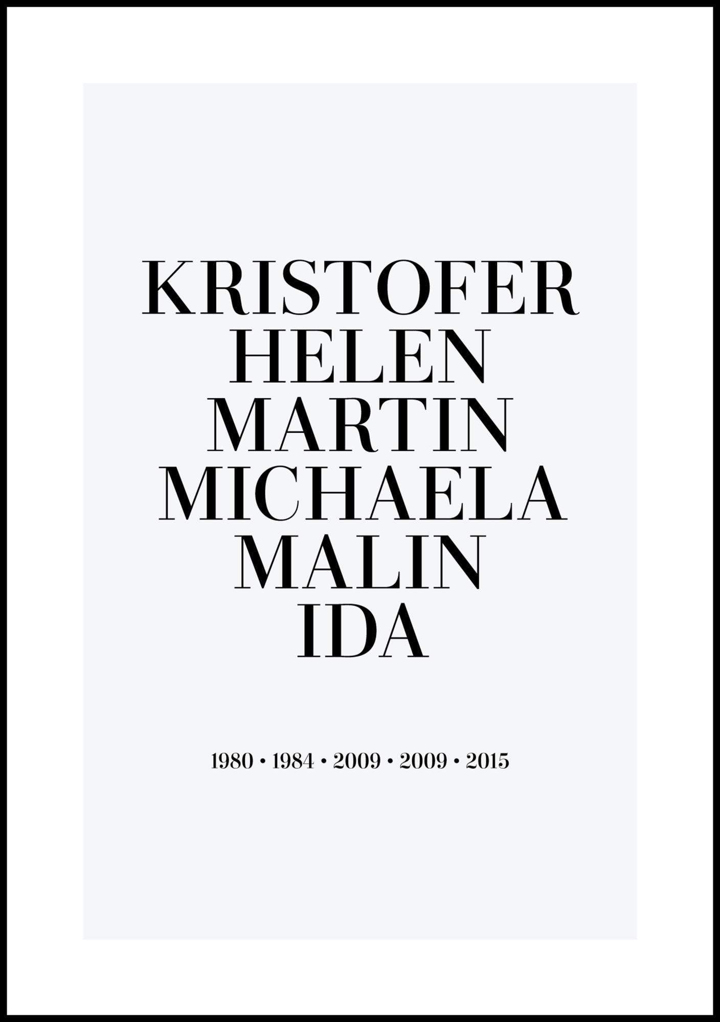 Un poster personale è un regalo unico e divertente, sia da dare che da ricevere, e diventa un bel ricordo che sarà curato a lungo. Devi solo compilare i campi sopra con le informazioni che desideri includere, e noi creeremo il tuo poster personale!