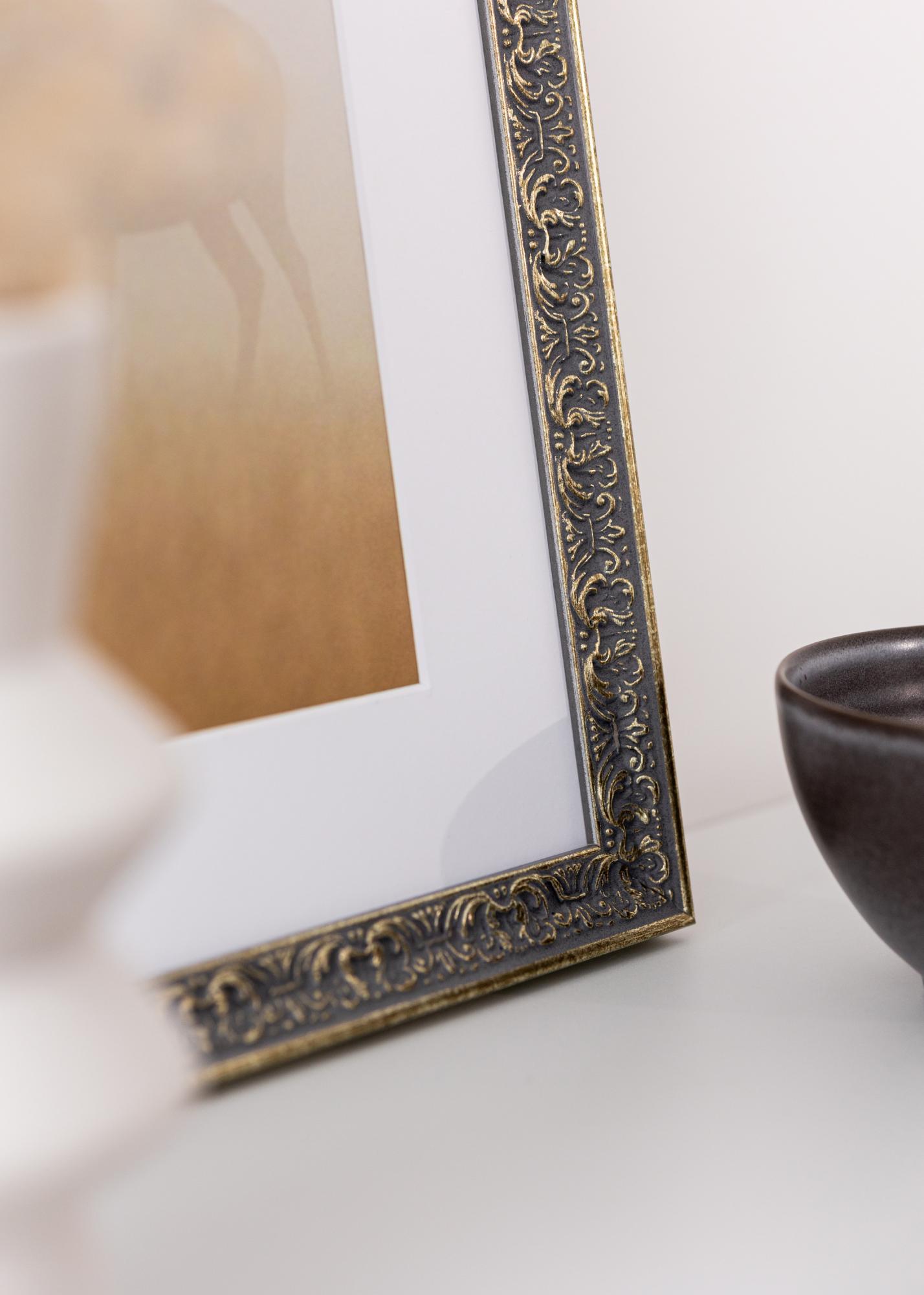 Questa elegante cornice fotografica è una perfetta combinazione di design classico e funzionalità moderna. Con il suo stile ispirato all'antico e ornamenti splendidamente dettagliati in una tonalità grigiastra con inserti dorati, dona una sensazione vintage che valorizza qualsiasi stanza. La cornice è realizzata in legno e ha una fascia di 25 mm di larghezza e una profondità di 24 mm, conferendo una sensazione robusta e solida.