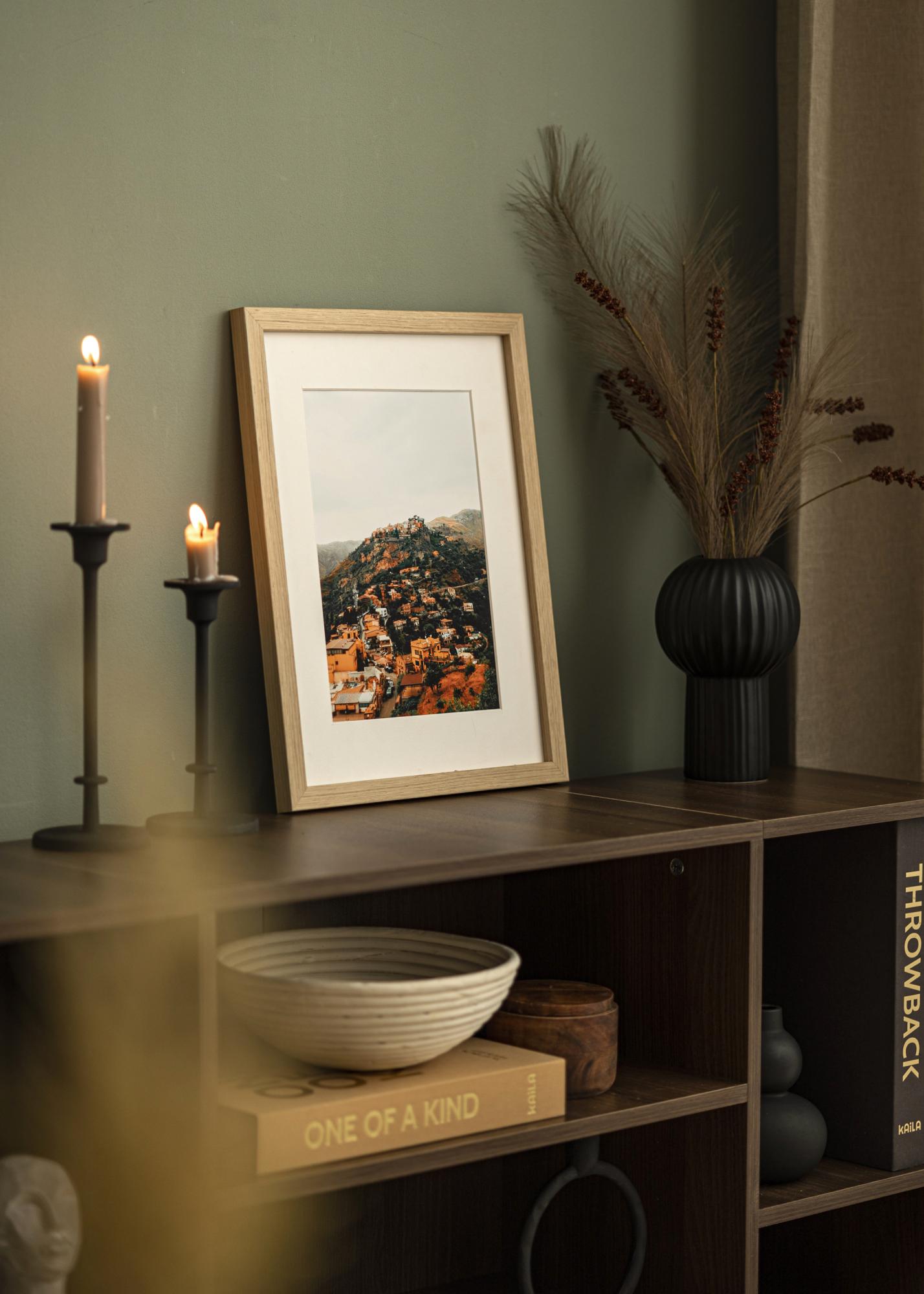 Blocky Quercia è realizzata in pino con vero impiallacciatura di quercia non trattata, che conferisce un aspetto autentico e naturale. Ogni cornice è creata nel nostro laboratorio di cornici, il che ci consente di garantire alta qualità e precisione in ogni dettaglio. Poiché questa cornice è personalizzata, puoi adattare le dimensioni esattamente alle tue esigenze e desideri.