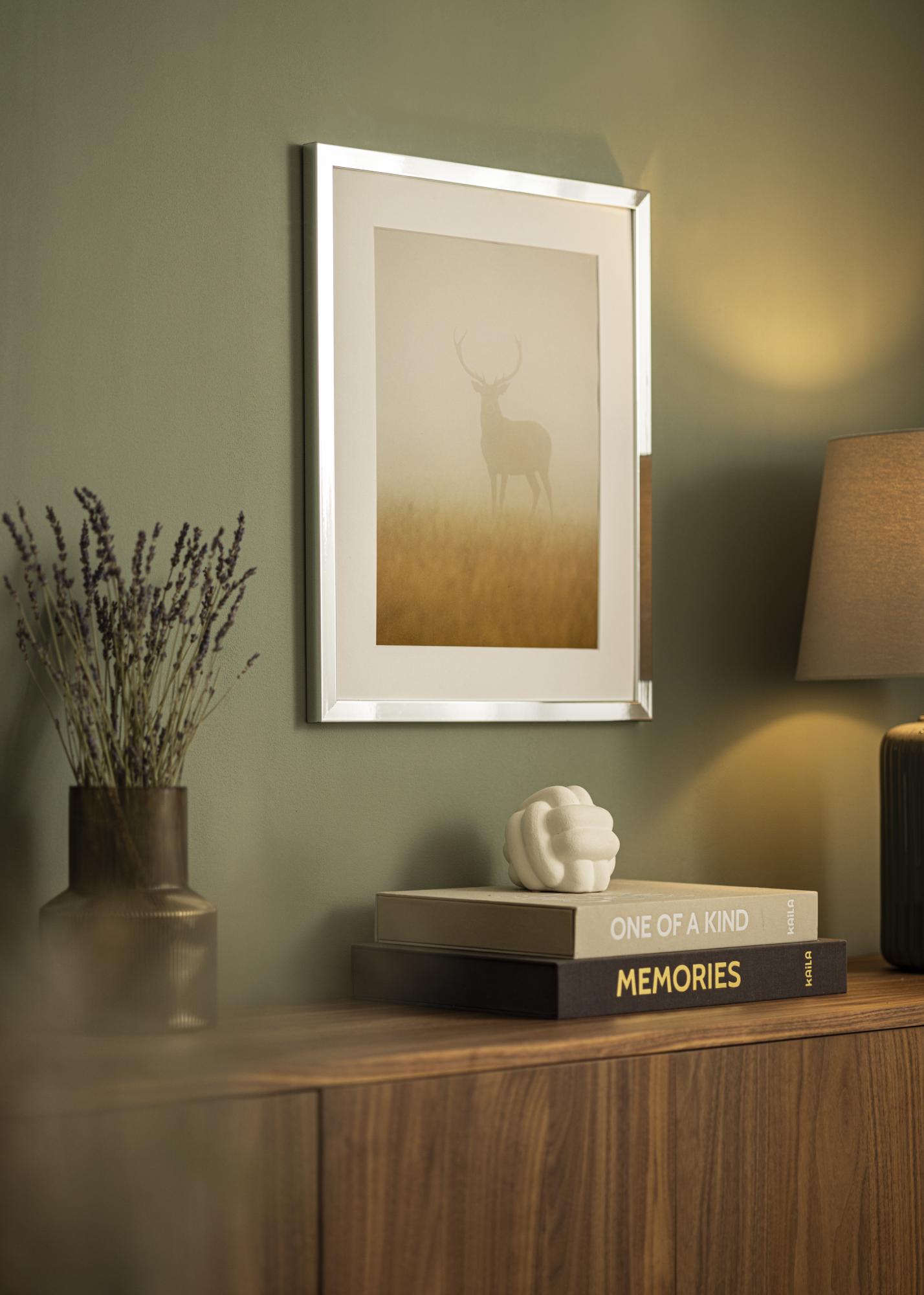 Devon Silver è una cornice su misura che produciamo con precisione e cura. Con la sua elegante finitura argentata e la superficie a specchio, questa cornice riflette la luce in modo da creare una sensazione moderna ed elegante nella tua casa. La superficie metallica liscia cattura l'ambiente circostante e dona una lucentezza dinamica a seconda dell'angolo della luce.