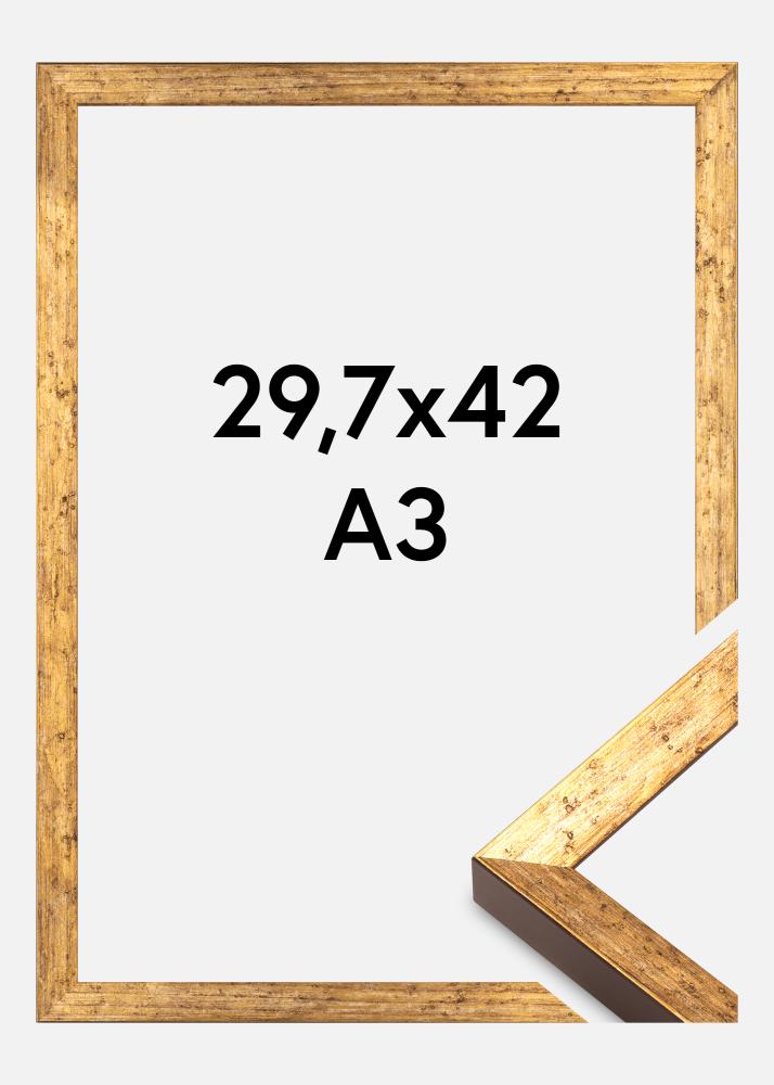 Questa elegante cornice dorata è una perfetta combinazione tra il fascino vintage e il design moderno. Con la sua finitura dorata invecchiata e la superficie leggermente ruvida, offre un fascino rustico e senza tempo che si adatta perfettamente sia agli arredi classici che moderni. La cornice è realizzata in legno e presenta un profilo sottile con una lista di 20 mm di larghezza e una profondità di 24 mm. Questa cornice è ideale per mettere in risalto opere d'arte o fotografie con un tocco antico.