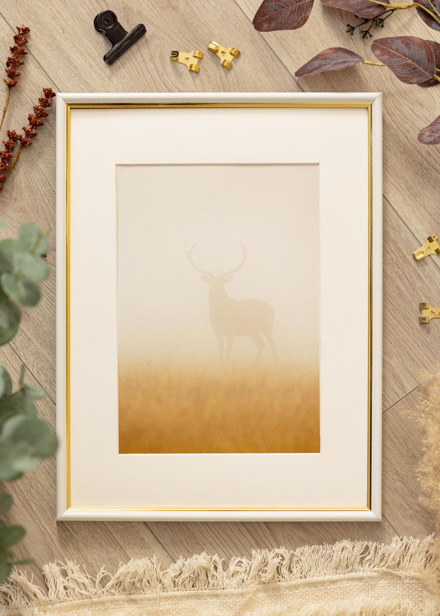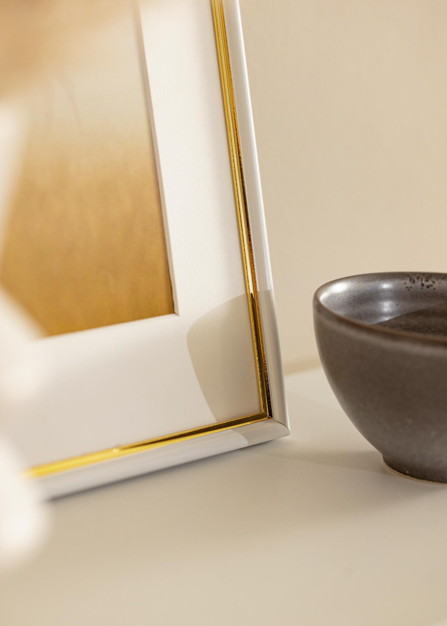 Jazz Bianco è una cornice elegante che trasmette una sensazione di lusso ed eleganza. Con il suo profilo bianco con un bordo dorato vicino all'immagine, questa è un'ottima scelta per le foto di persone o animali domestici.