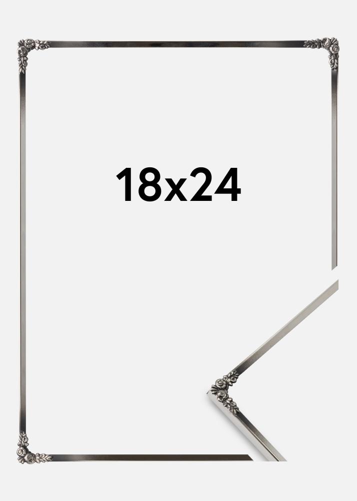 Rosen Metall Argento è una cornice in stile classico, dove ogni angolo è decorato con piccole rose eleganti. La cornice è realizzata in metallo argentato e ha una leggera finitura "bruciata" che contribuisce a creare un'atmosfera extra elegante. Sul retro ci sono supporti per parete e supporto posteriore, che consentono di posizionare la cornice sia appesa al muro che come decorazione su un mobile.