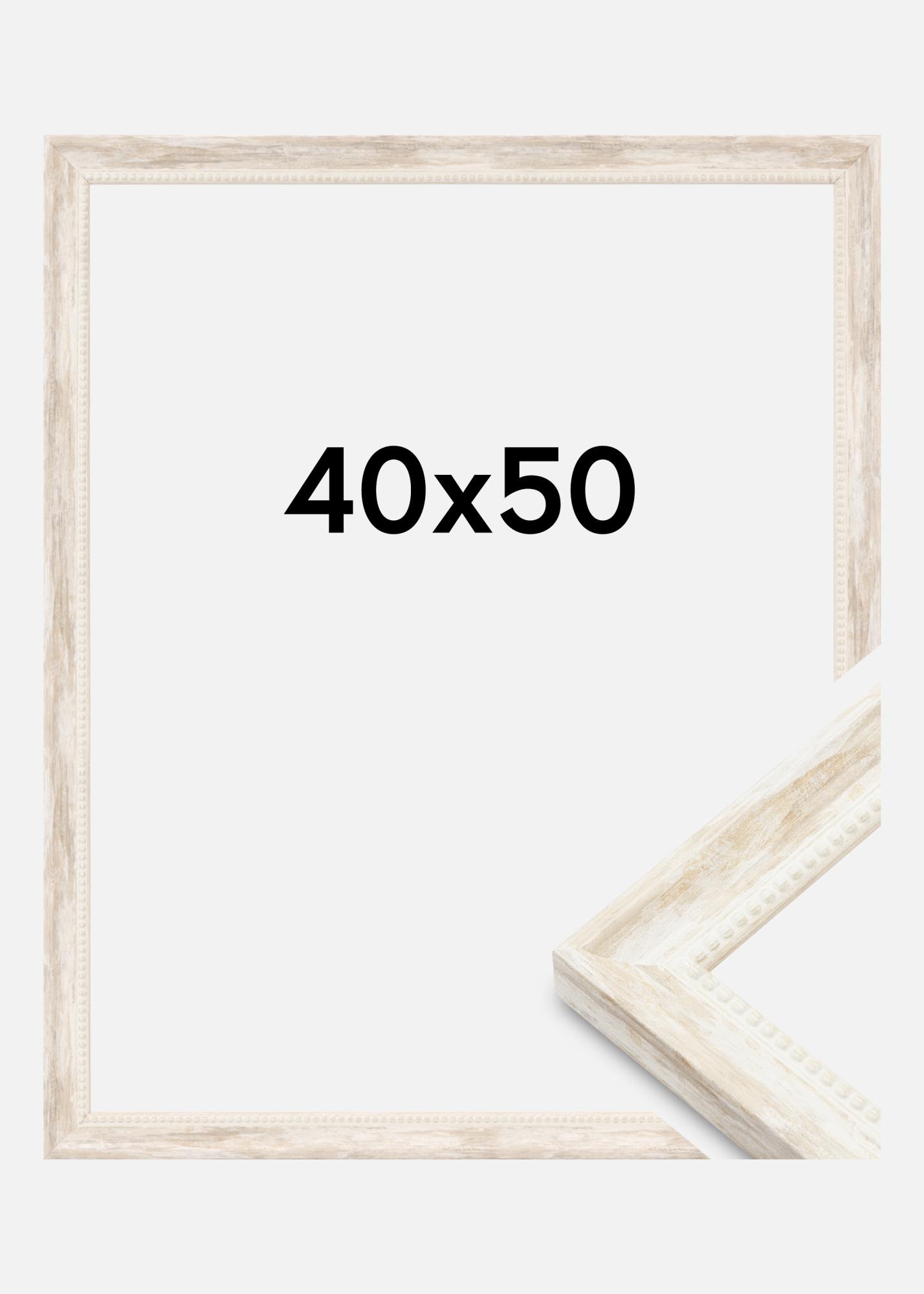 Questa bellissima cornice per foto di colore bianco è una perfetta combinazione di fascino rustico ed eleganza raffinata. Con le sue dimensioni di 40x50 cm è ideale per evidenziare i tuoi soggetti preferiti, sia che si tratti di opere d'arte o fotografie. La cornice ha un bordo decorativo a perla lungo l'interno, che le conferisce un design classico e dettagliato che si adatta sia agli interni moderni che tradizionali.