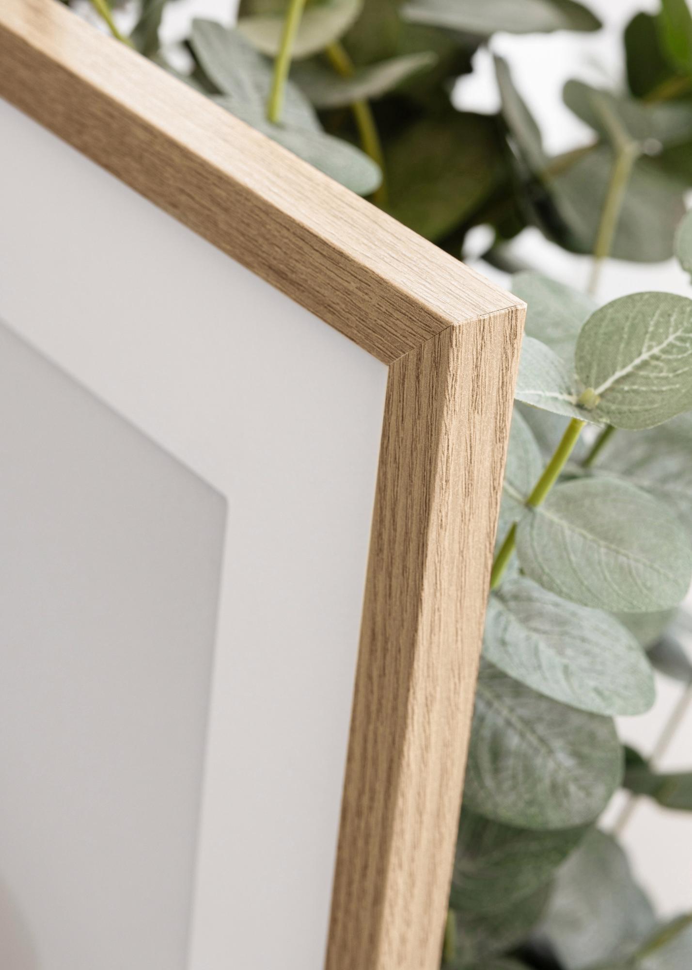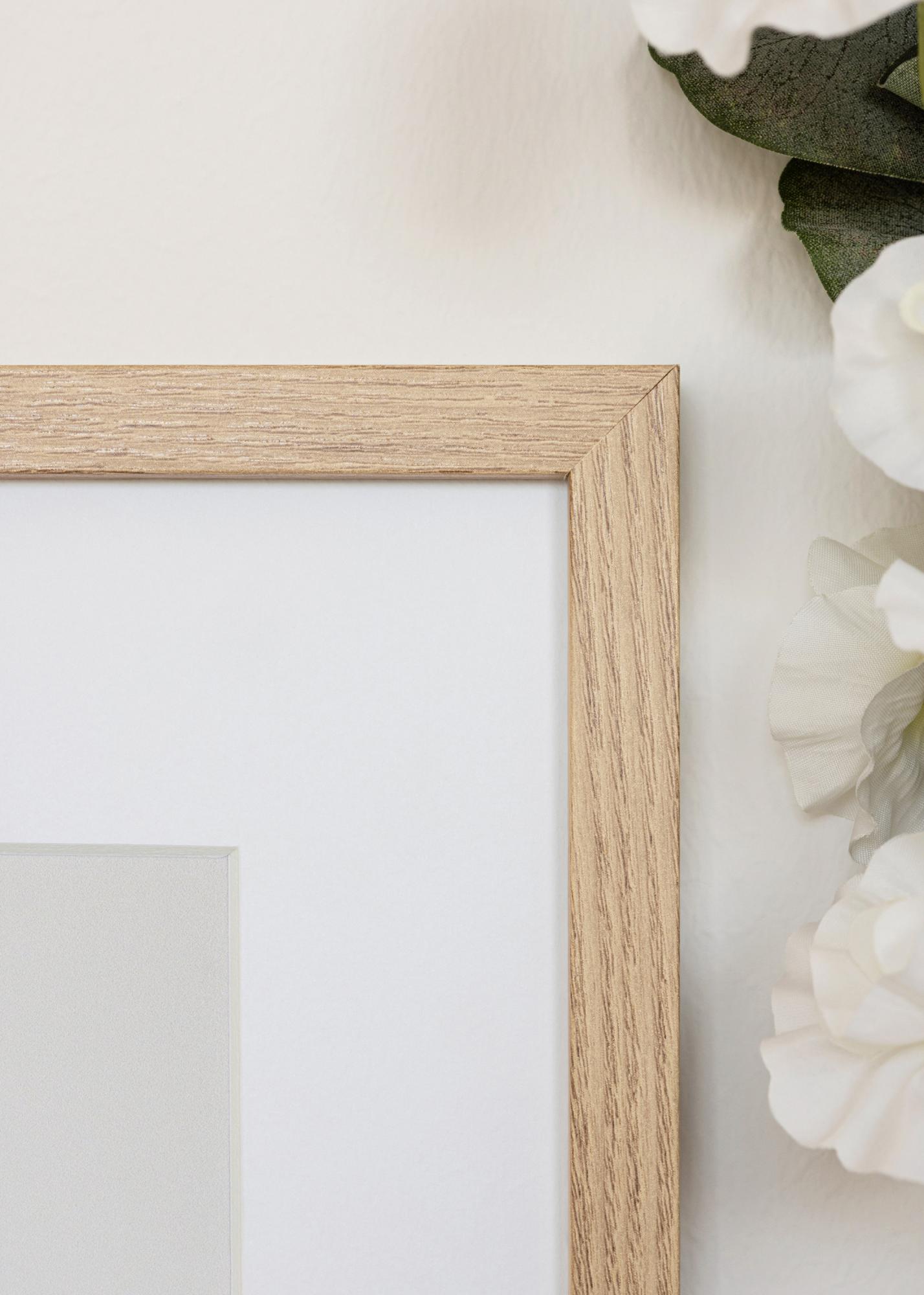 La cornice è realizzata in materiale MDF con una finitura in laminato di colore Rovere e ha un profilo sottile di 14 mm. C'è abbondanza di spazio per completare le tue immagini con un passe-partout di lusso, grazie alla profondità interna della cornice di 12 mm.
