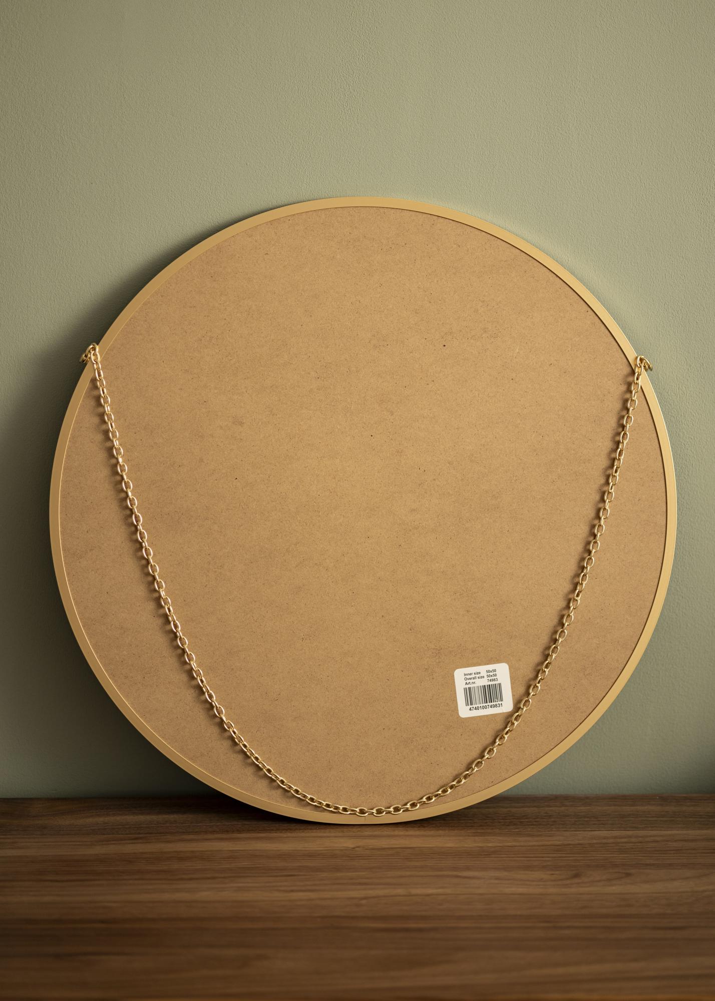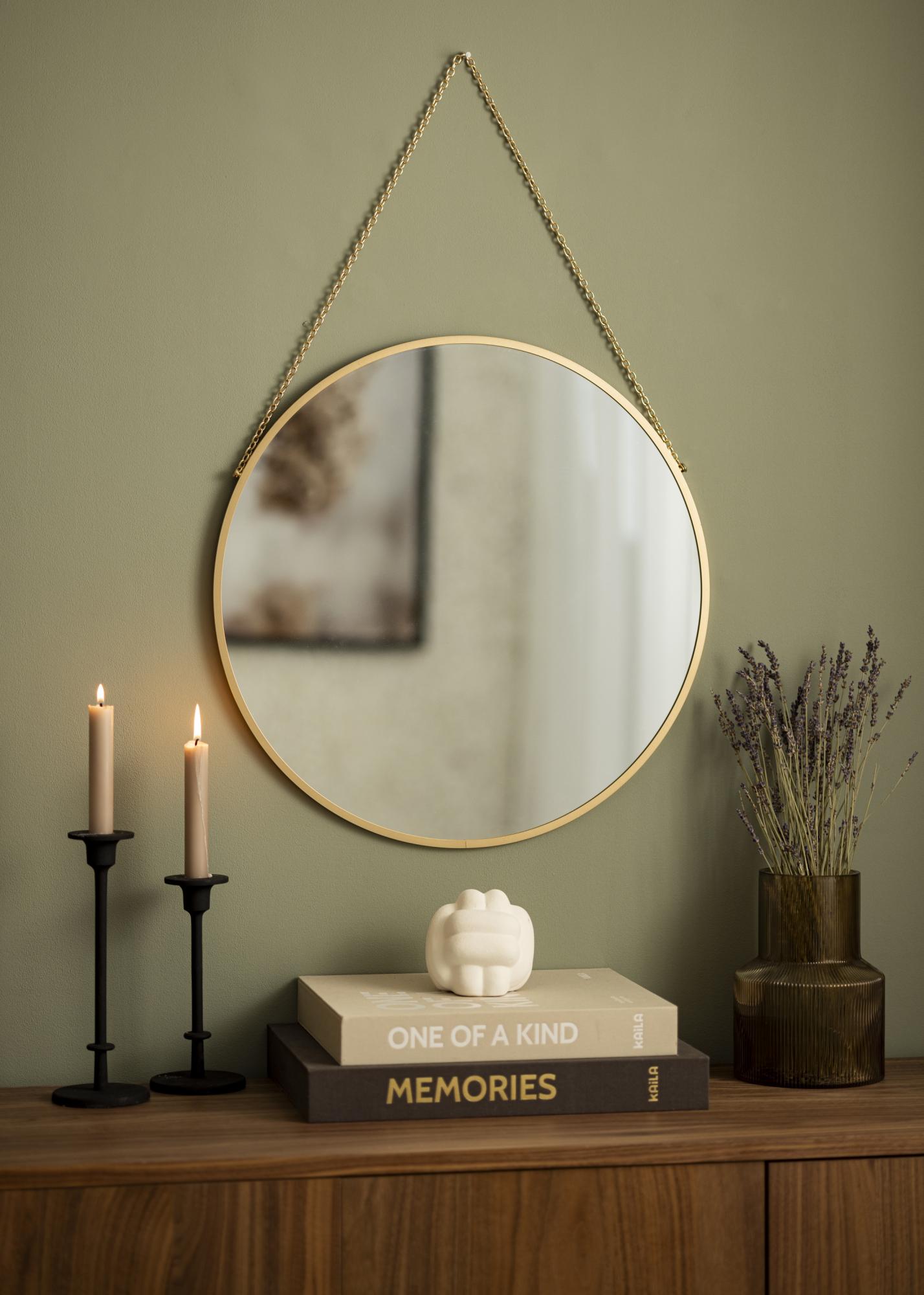 Lascia che questo specchio da parete aggiunga eleganza alla tua casa! Lo specchio ha un aspetto sofisticato con una forma rotonda e una sottile cornice specchiata con una profondità di soli 8 mm. La cornice compatta è realizzata in metallo e ha un esclusivo colore oro. L'impressione elegante è completata dalla catena dorata utilizzata per l'appendere.