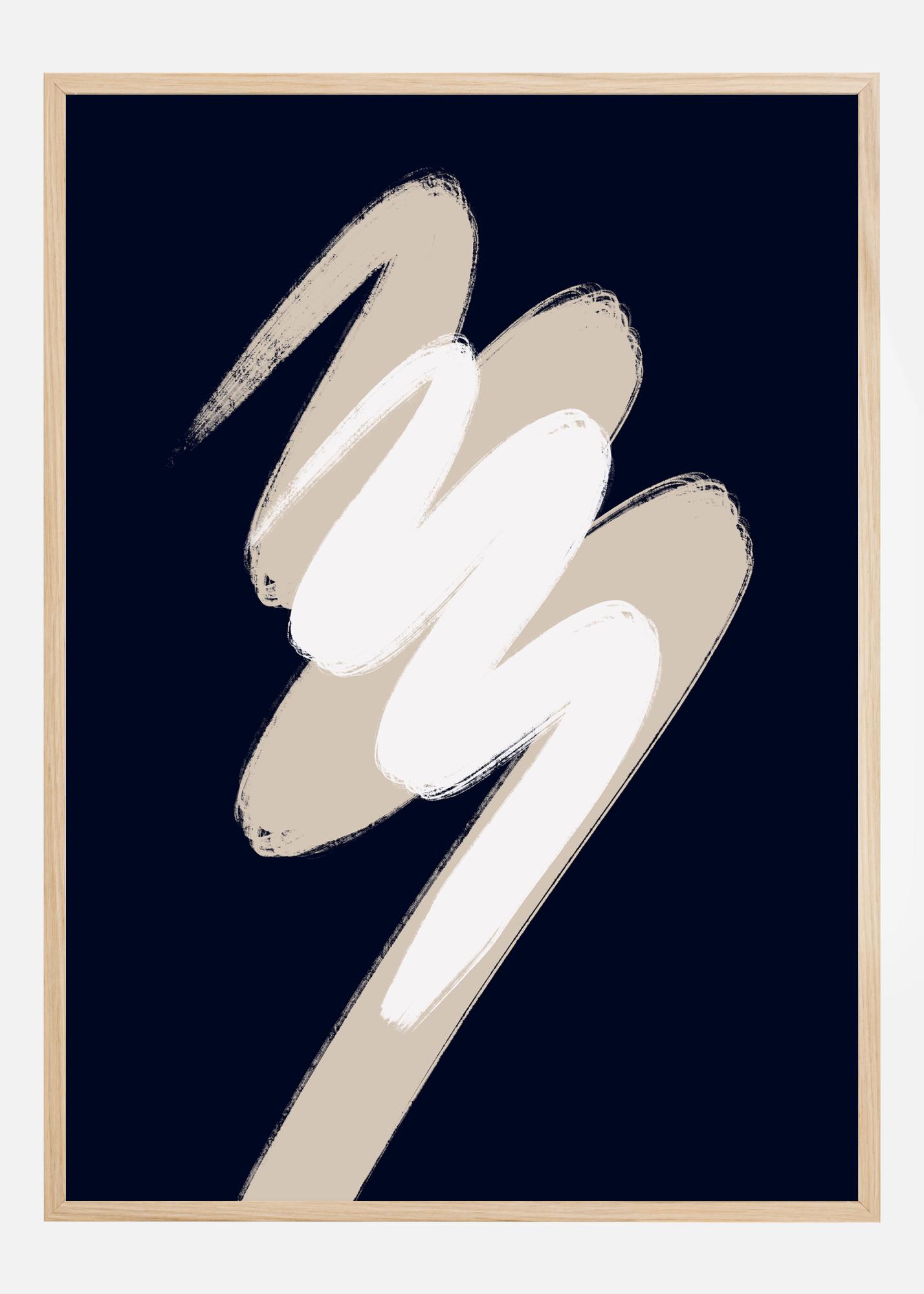 Questo poster astratto e moderno emana una sensazione di libertà artistica e creatività. Le audaci pennellate in bianco e beige scorrono sullo sfondo blu scuro, creando un forte contrasto visivo che cattura e mantiene l'attenzione dell'osservatore. Il motivo dà un'impressione di movimento e spontaneità, caratteristica della direzione espressiva nell'arte astratta.