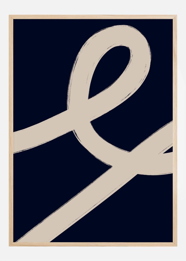 Questo poster minimalista e contemporaneo cattura l'essenza del design scandinavo con la sua composizione pulita e semplice. Una grande linea sinuosa beige si staglia su uno sfondo blu scuro, creando un'immagine che è sia calmante che visivamente interessante. Il contrasto tra i due elementi è sofisticato e offre un forte effetto grafico che mette in risalto la bellezza dell'arte astratta.