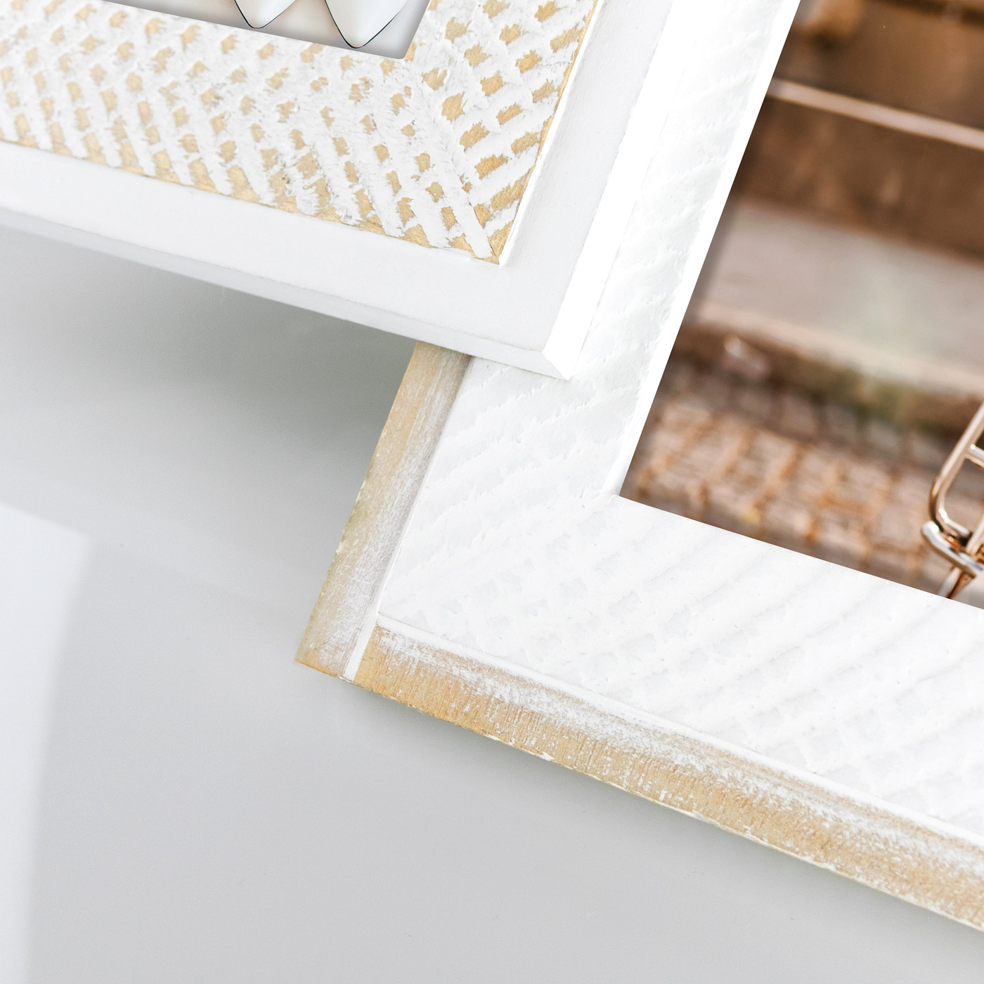 Cornice multipla rurale in bianco e legno che incornicia elegantemente più dei tuoi motivi e diventa anche un bel dettaglio nella tua casa. Questa bella Cornice multipla ha spazio per 4 foto di dimensioni 10x10 cm / 10x15 cm / 13x18 cm. La Cornice multipla è realizzata in legno e le dimensioni esterne misurano 38,8x39,8 cm. Supporto da parete incluso.