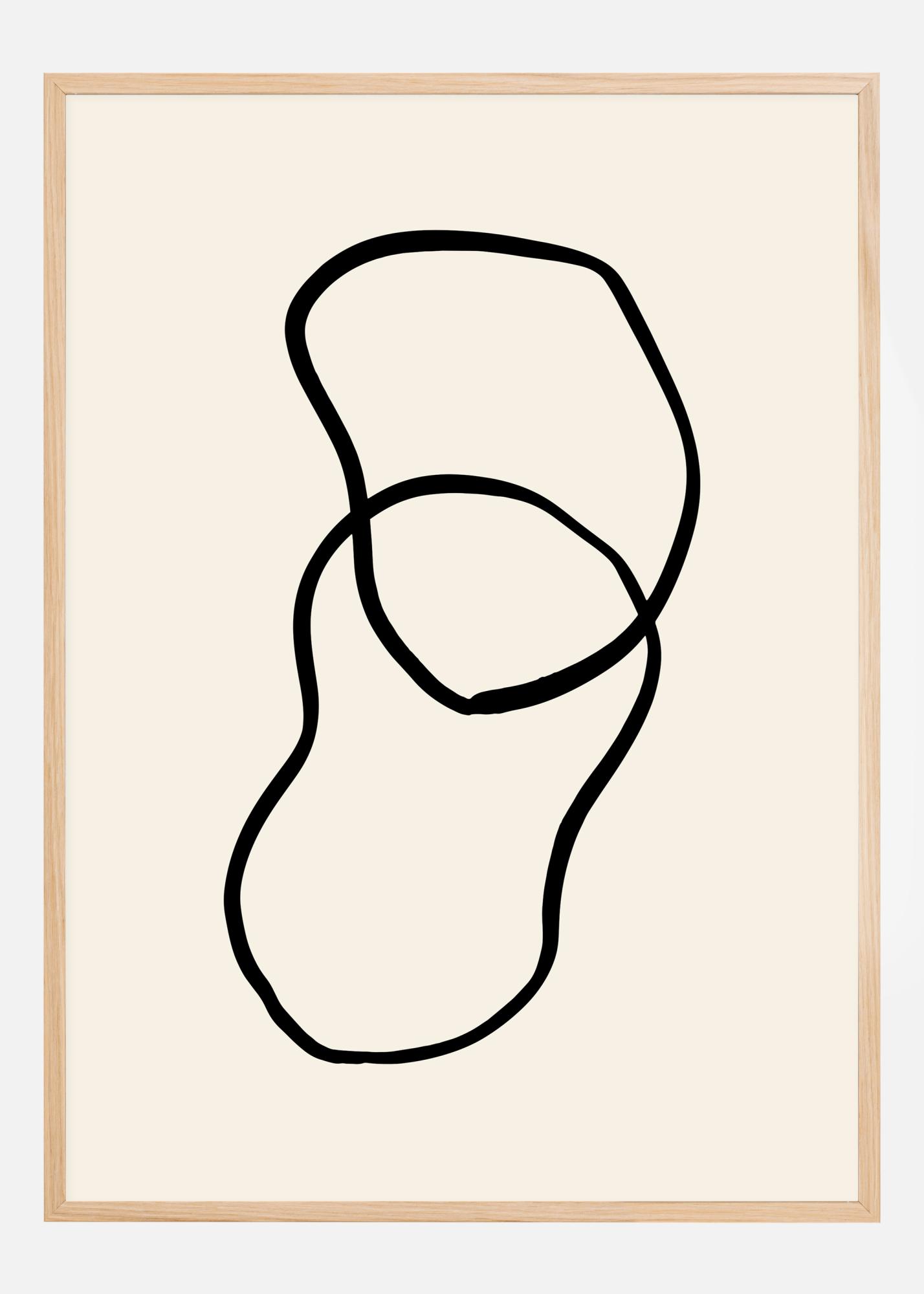 Un poster astratto con due forme che si intrecciano. Due forme goffe sono disegnate con linee nere spesse e si incrociano per creare una terza forma. Appendi questa divertente immagine in bianco e nero su una parete colorata per ottenere una sensazione artistica moderna in casa.