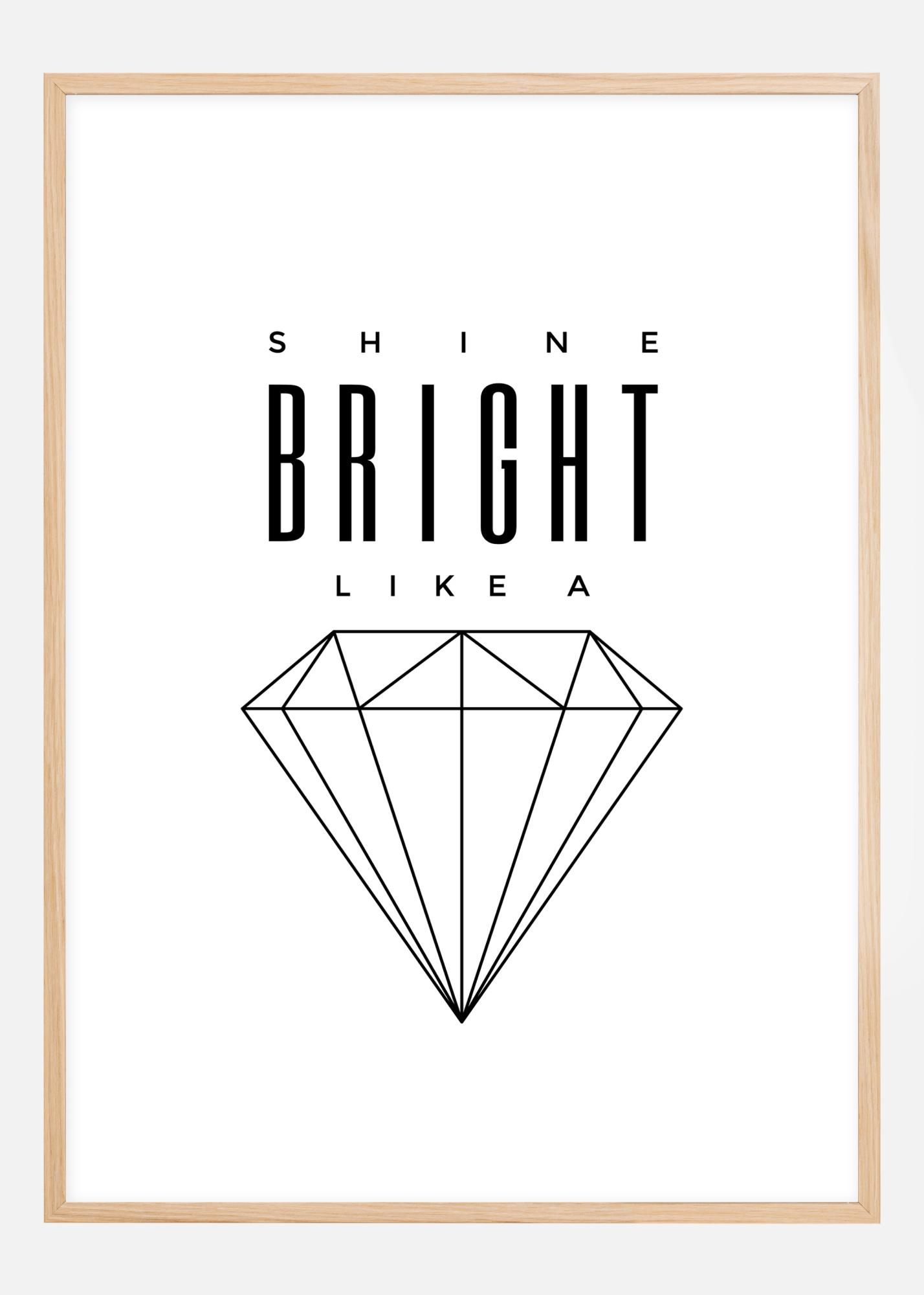 Ricordati sempre di continuare a brillare come un diamante, anche quando ti senti stanco dentro. Questo bellissimo poster non devi essere un fan di Rihanna per amarlo. Il poster ha un design elegante in bianco e nero con un diamante grafico al centro. Sopra il diamante c'è scritto "Brilla luminoso come un" stampato con eleganti lettere nere. Poiché il poster è disponibile in diverse dimensioni, puoi facilmente trovare quella adatta al tuo muro. Crea un'atmosfera lussuosa completando con una cornice nera o dorata dal nostro vasto assortimento.