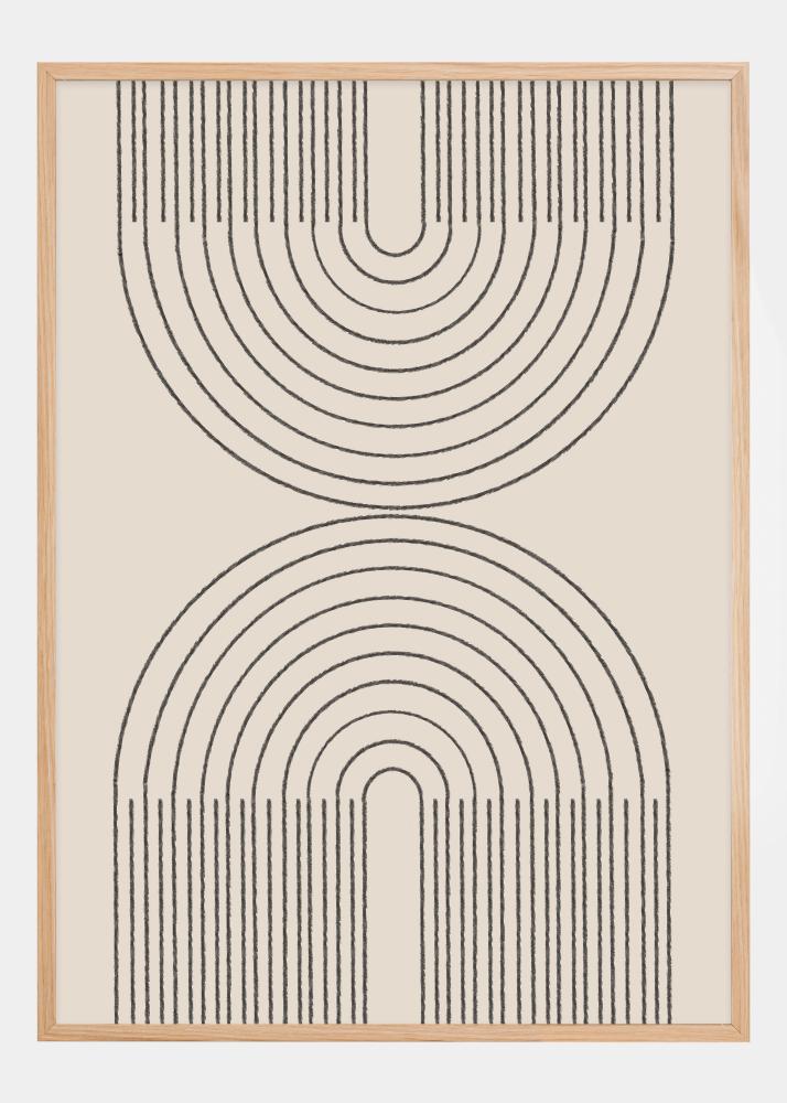 Questo poster minimalista cattura l'essenza della semplicità con il suo design architettonico essenziale. Gli archi eleganti, disegnati con precisione, creano una sensazione di calma e struttura, mentre il nero su sfondo bianco offre un chiaro contrasto visivo che è sia audace che semplice. Questa rappresentazione artistica è sia moderna che senza tempo, adatta a una varietà di diversi stili d'arredo.