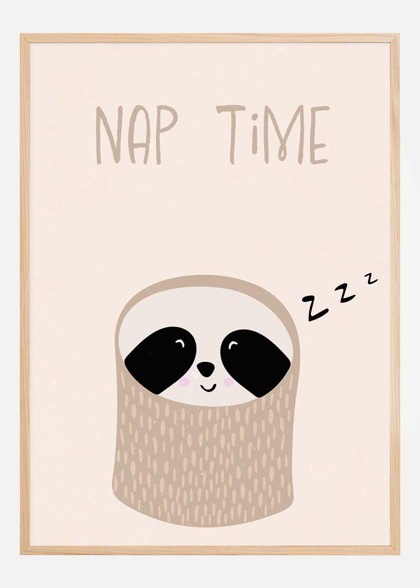 Questo adorabile poster, decorato con le parole "NAP TIME" e un'immagine di un bradipo addormentato, è la decorazione murale perfetta per creare un'atmosfera calma e rilassata. L'illustrazione è realizzata in colori morbidi e smorzati, con uno sfondo rosa pastello e il pelo del bradipo in tonalità naturali di beige e marrone. I grandi occhi gentili e il sorriso pacifico sul volto del bradipo sono irresistibili e trasmettono una sensazione di calore e tranquillità.