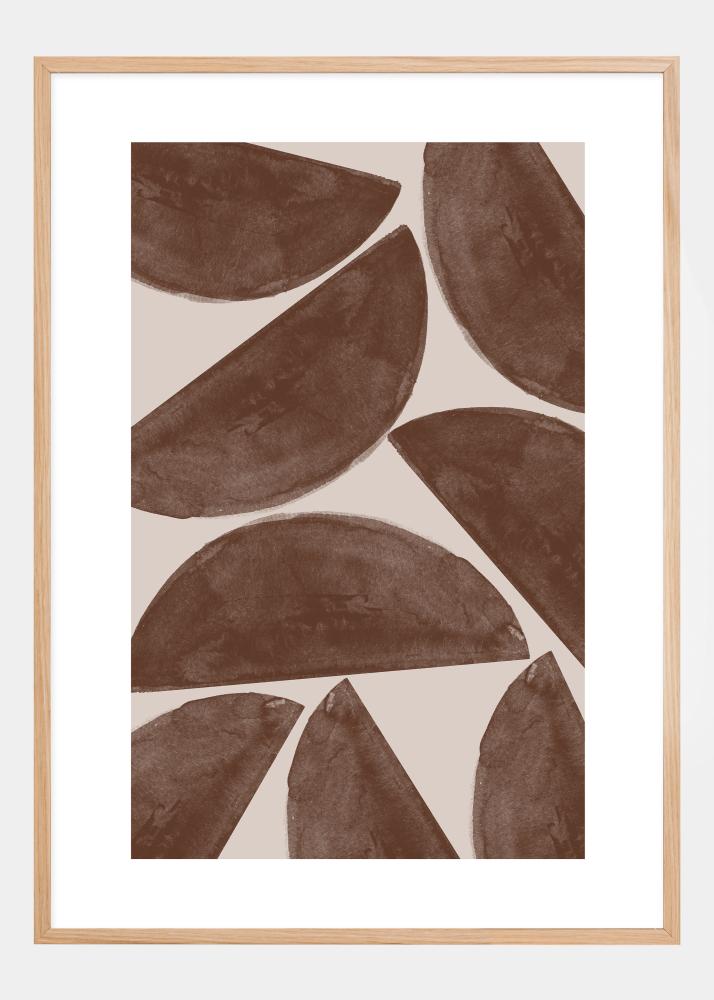 Questo poster mette in risalto una serie di forme dolcemente astratte che ricordano la semplice bellezza della natura. Con il suo arrangiamento di elementi organici in tonalità calde di marrone e beige, dà l'impressione di pietre o foglie sparse in un motivo naturale. Questa stampa è un esempio di arte astratta che è tanto stimolante quanto esteticamente soddisfacente.