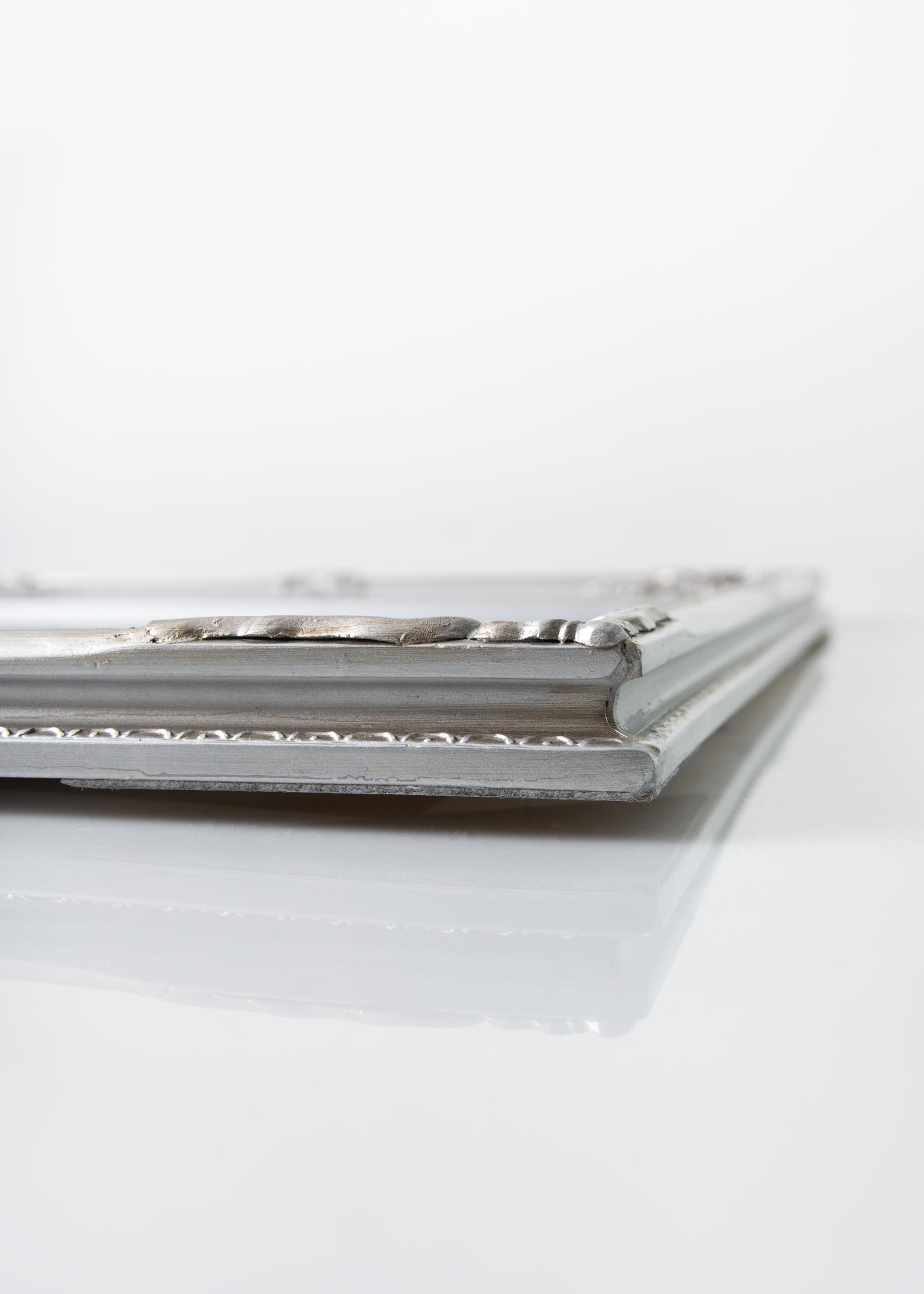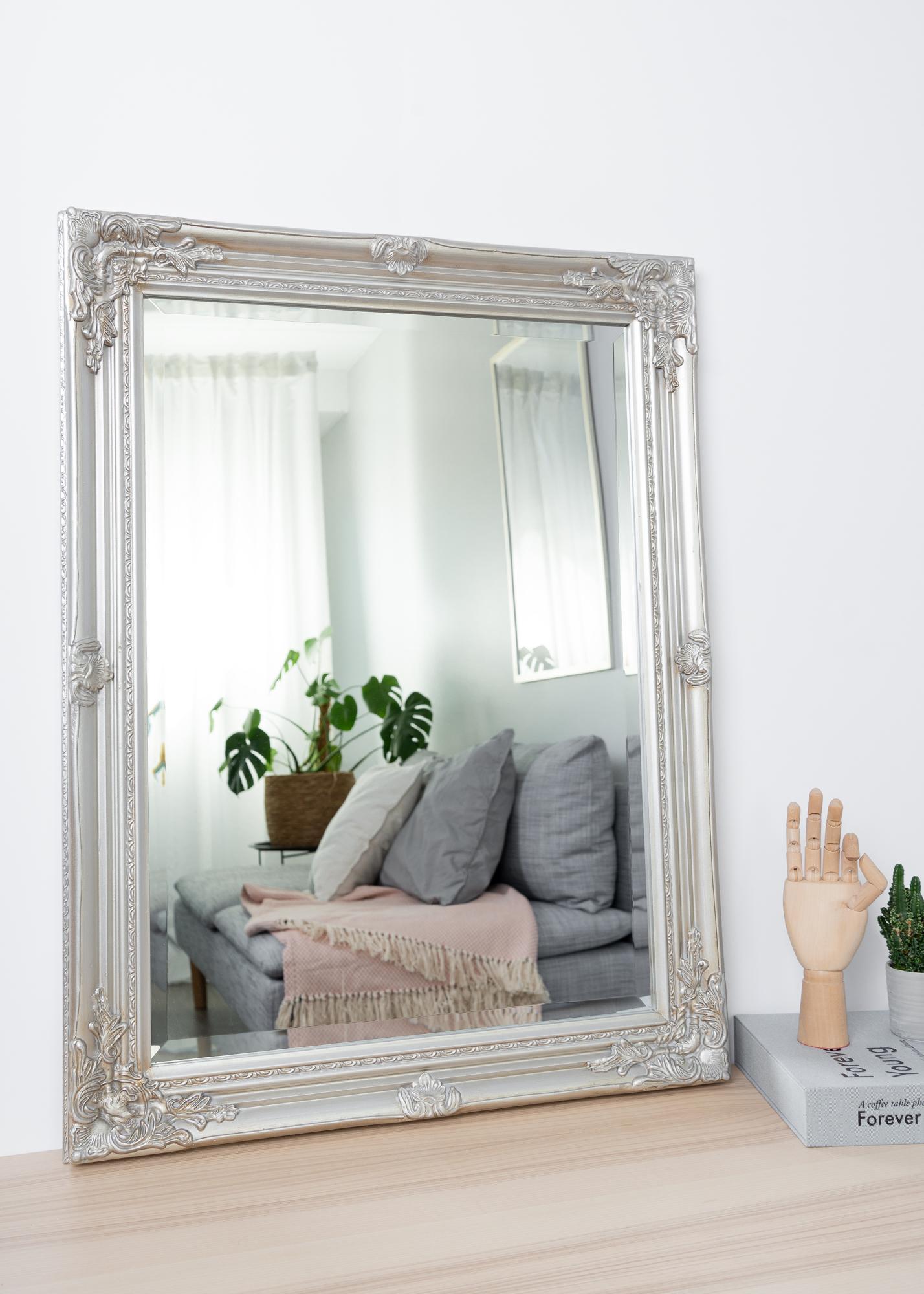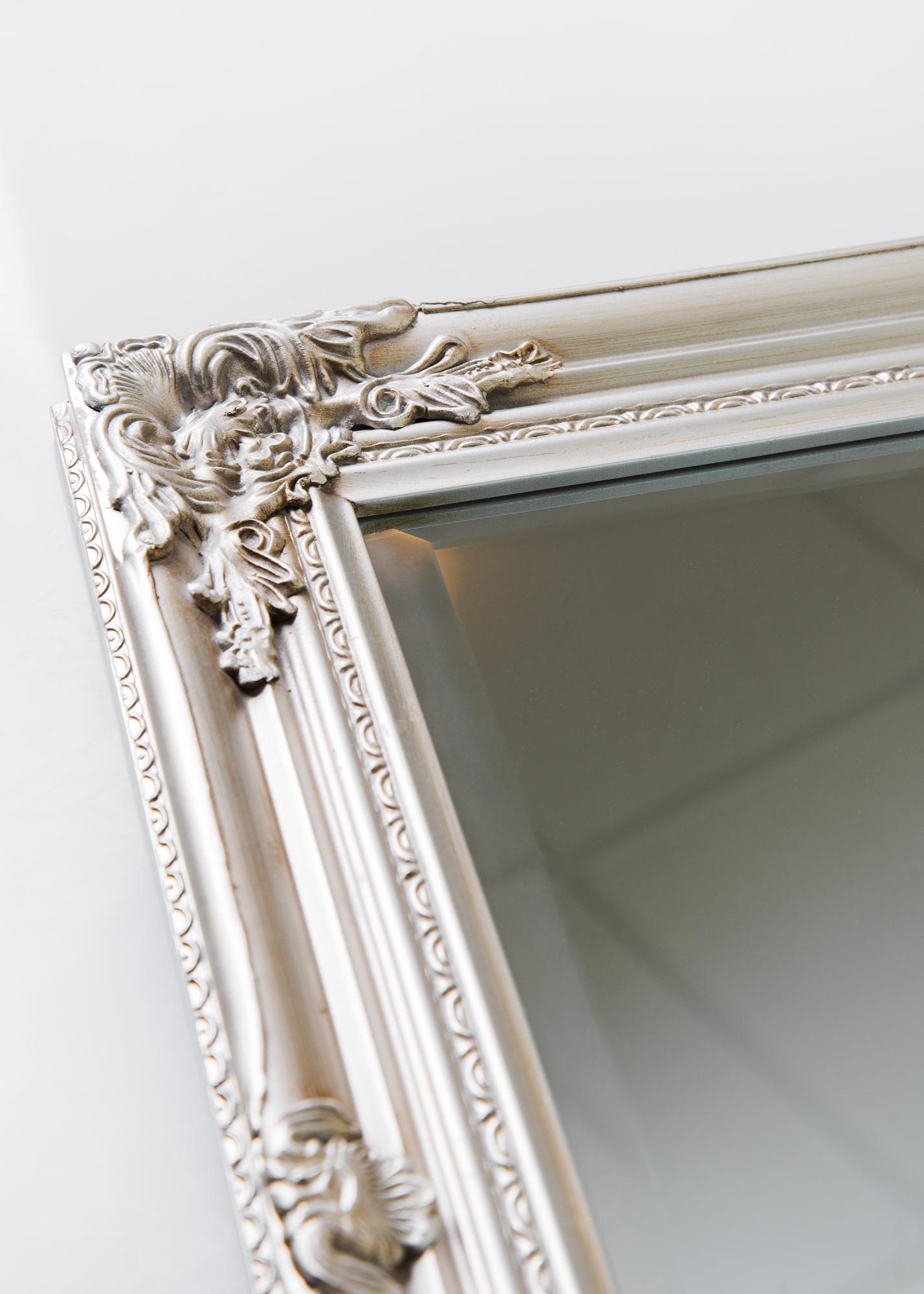 Lo specchio Antique Argento è uno specchio da parete con un formato e una forma tradizionali. Ha una cornice in legno con una decorazione bellissima e classica che è stata realizzata in gesso e poi applicata alla cornice. Questa cornice rende lo specchio un bellissimo ornamento che attirerà l'attenzione.