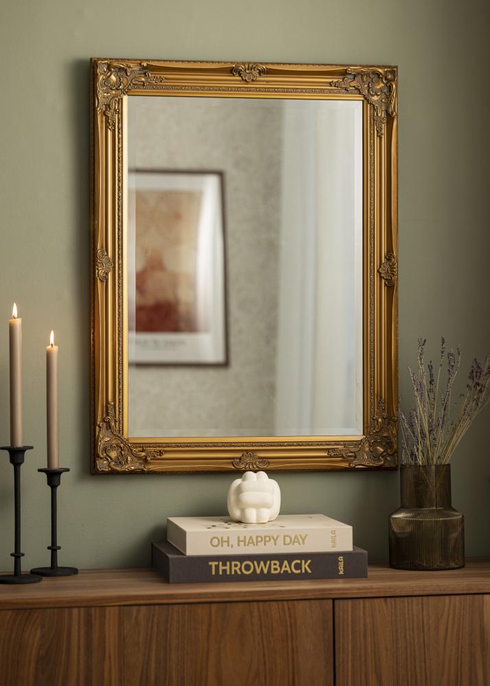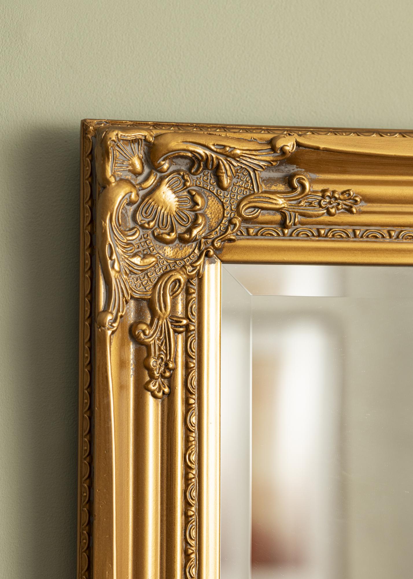 Lo specchio Antique Oro è uno specchio da parete con un formato e una forma tradizionali. Ha una cornice in legno con una decorazione bellissima e classica che è stata realizzata in gesso e poi applicata alla cornice. Questa cornice rende lo specchio un bellissimo ornamento che attirerà l'attenzione.