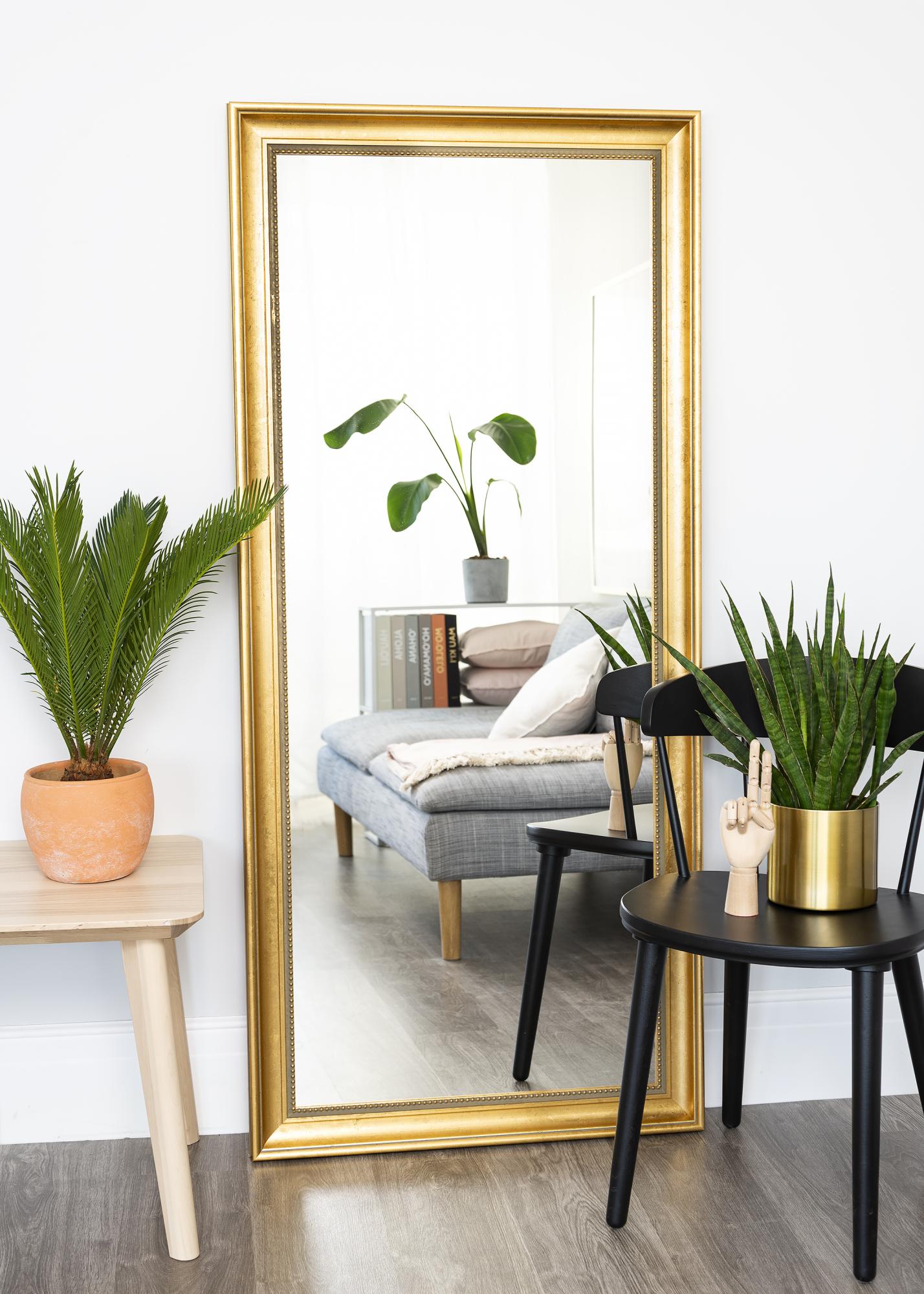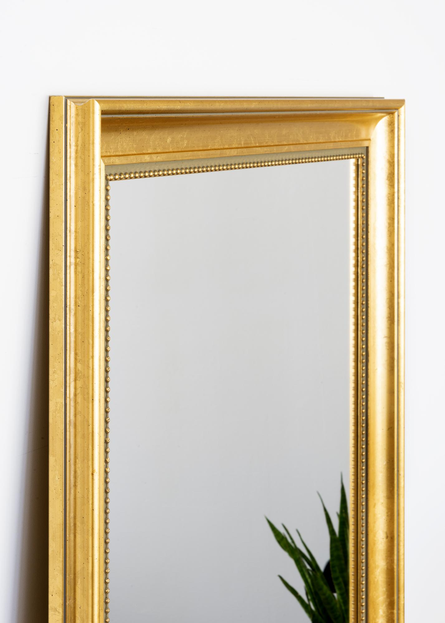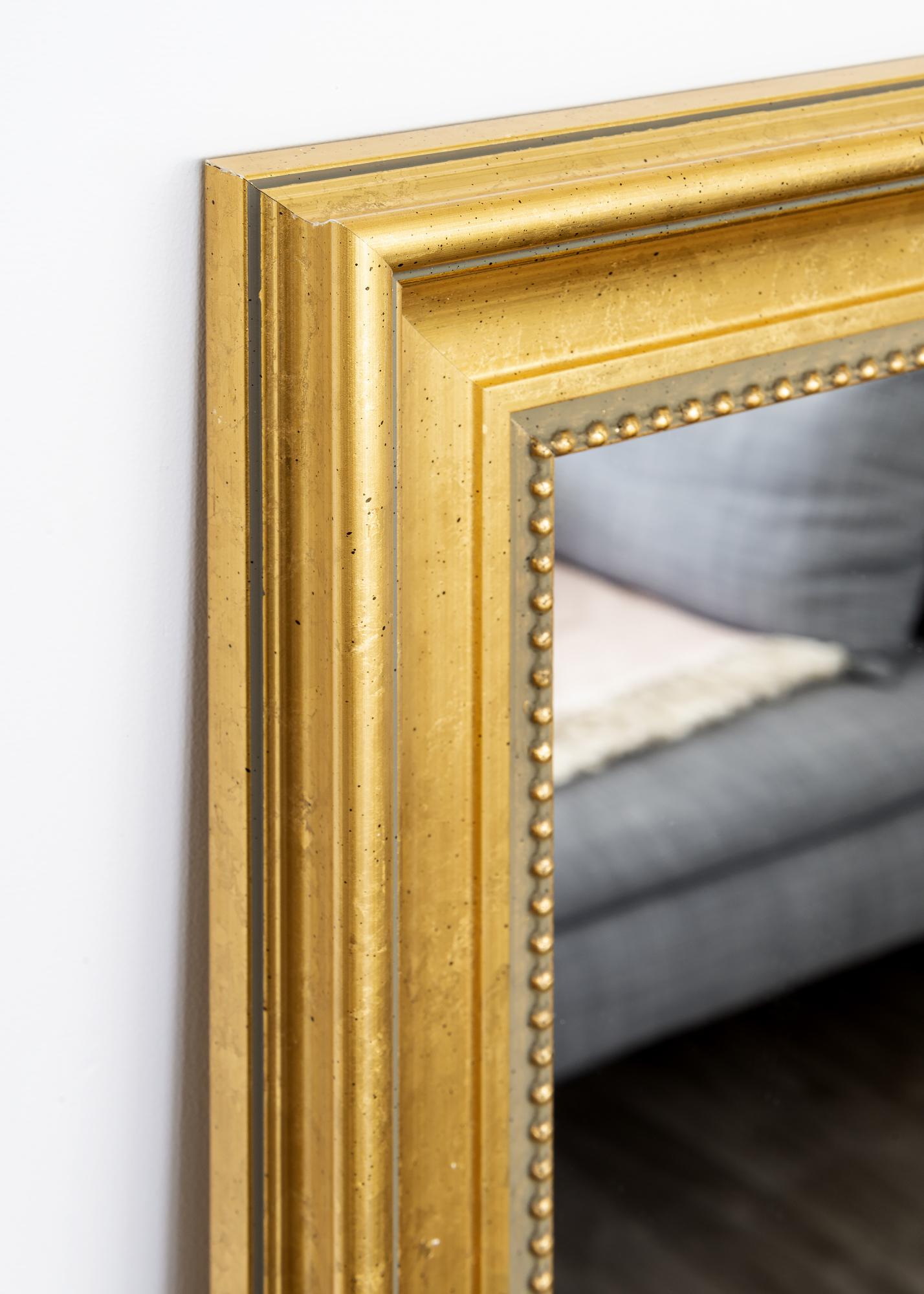 Acquista uno specchio elegante e rendi l'interno dell'ingresso, del soggiorno o del bagno extra lussuoso. Questo specchio di stile è disponibile in diverse dimensioni, quindi troverai facilmente quello adatto al tuo scopo. La cornice dello specchio ha un design classico con una cornice larga e un motivo a perle discreto vicino al vetro. Il legno proviene da una foresta gestita in modo sostenibile ed è dipinto in una bellissima tonalità dorata.