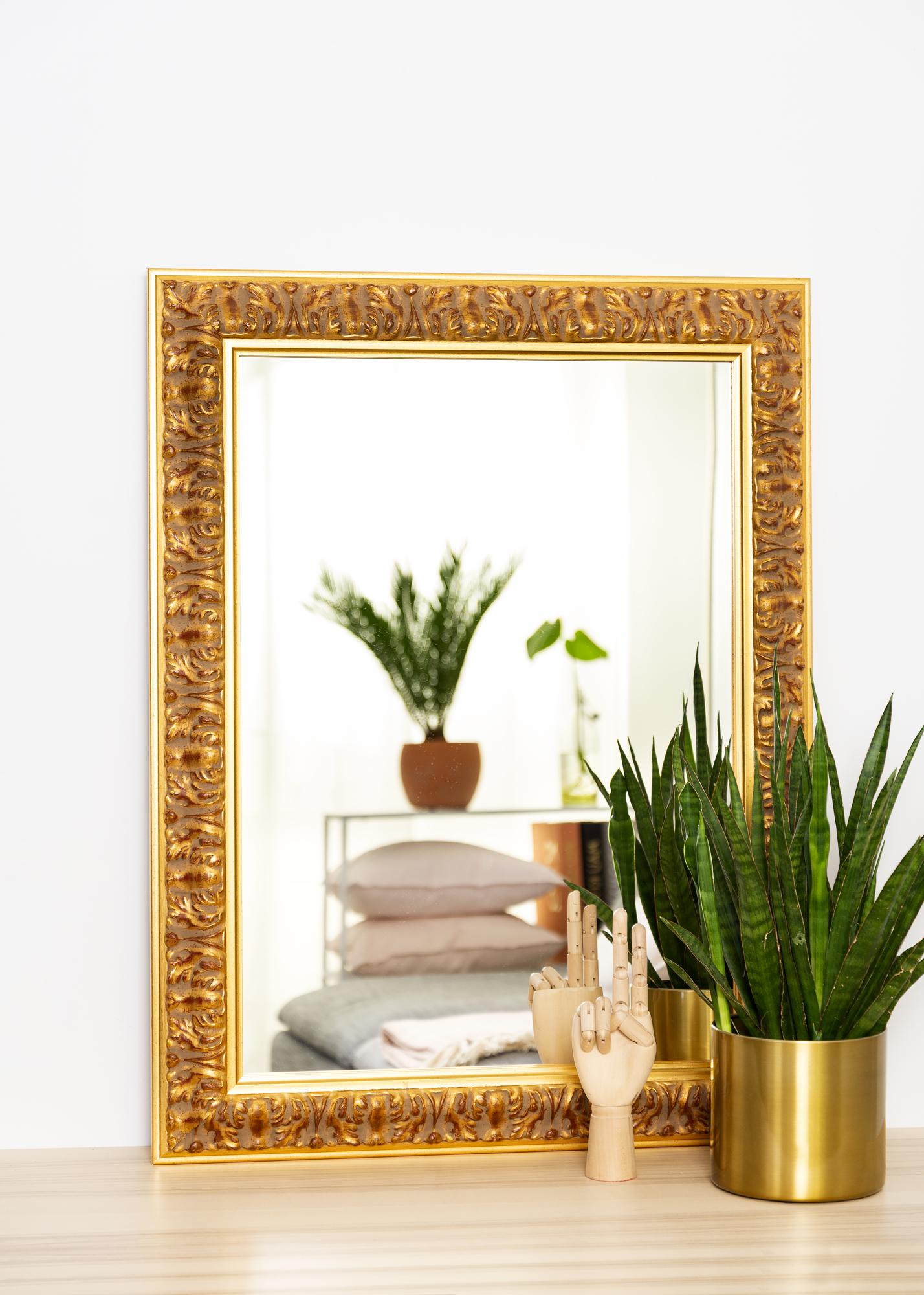 Dai alla tua casa un tocco di lusso con decorazioni che ricordano il barocco. Questo specchio è di alta qualità e ha una cornice barocca affascinante. La cornice è realizzata in legno proveniente da una foresta sostenibile ed è dipinta in diverse tonalità d'oro. Vicino al vetro c'è un sottile bordo dorato chiaro. Poiché lo specchio è disponibile in 7 diverse dimensioni, puoi trovare uno specchio sia per il tavolo da trucco che per uno specchio a figura intera.