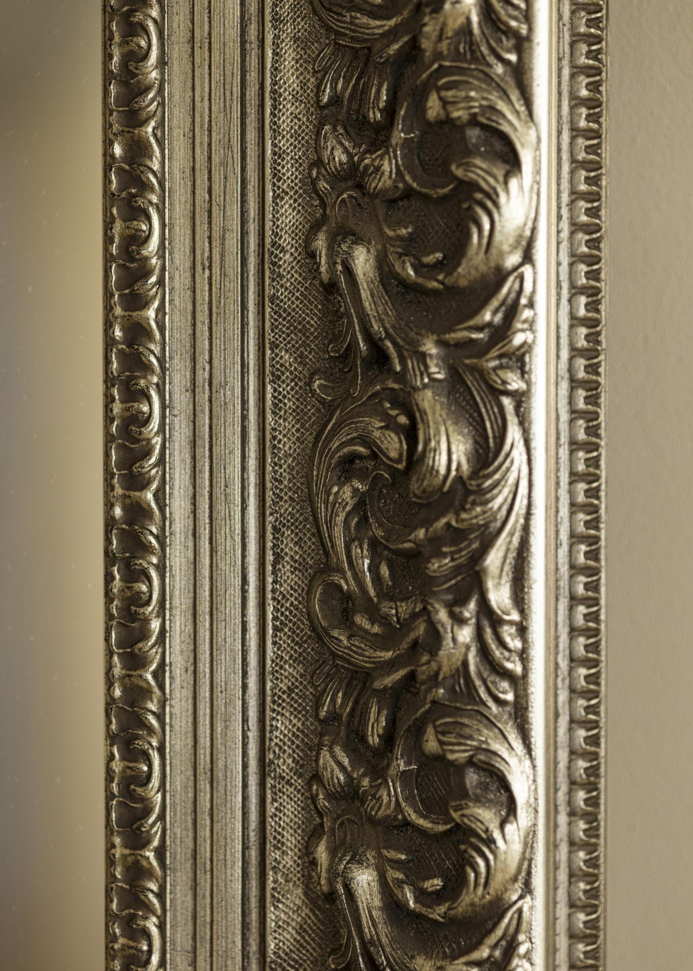 Lo specchio Birmingham Silver è uno specchio su misura che fabbrichiamo noi, il che ti dà la possibilità di averlo esattamente nelle dimensioni desiderate. Con la sua impressionante cornice larga 152 mm e una profondità di 74 mm, questo specchio diventa un dettaglio accattivante in qualsiasi stanza venga posizionato. La cornice è realizzata in pino e presenta un design riccamente ornamentale in argento antico, che conferisce allo specchio un carattere unico.