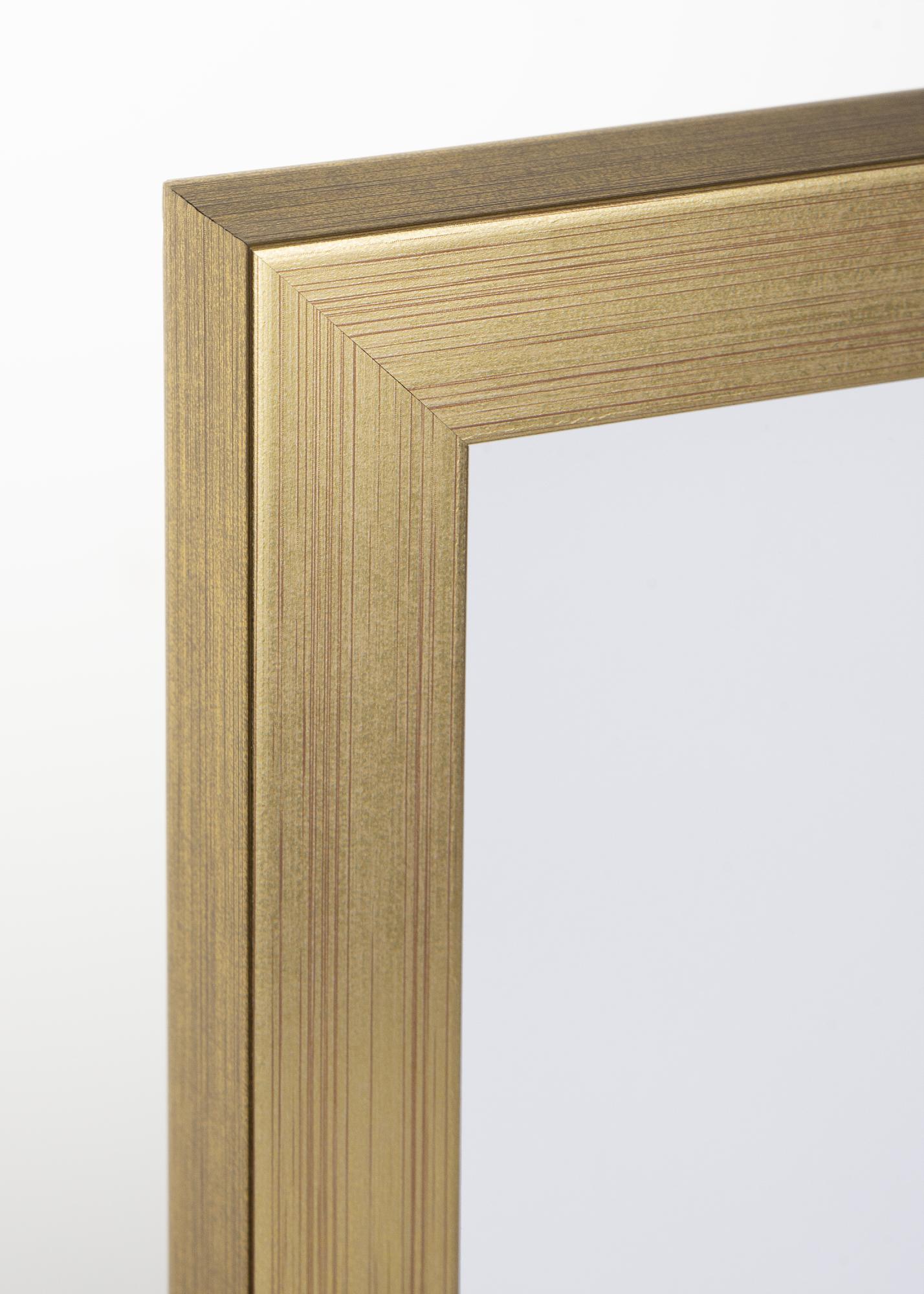 La cornice color oro conferisce allo specchio un aspetto elegante e lussuoso che si adatta alla maggior parte degli stili d'arredamento. La cornice è larga 20 mm e ha una profondità di 20 mm, il che conferisce allo specchio una costruzione stabile e robusta. Realizzato in pino laminato, lo specchio combina durata con un design elegante.