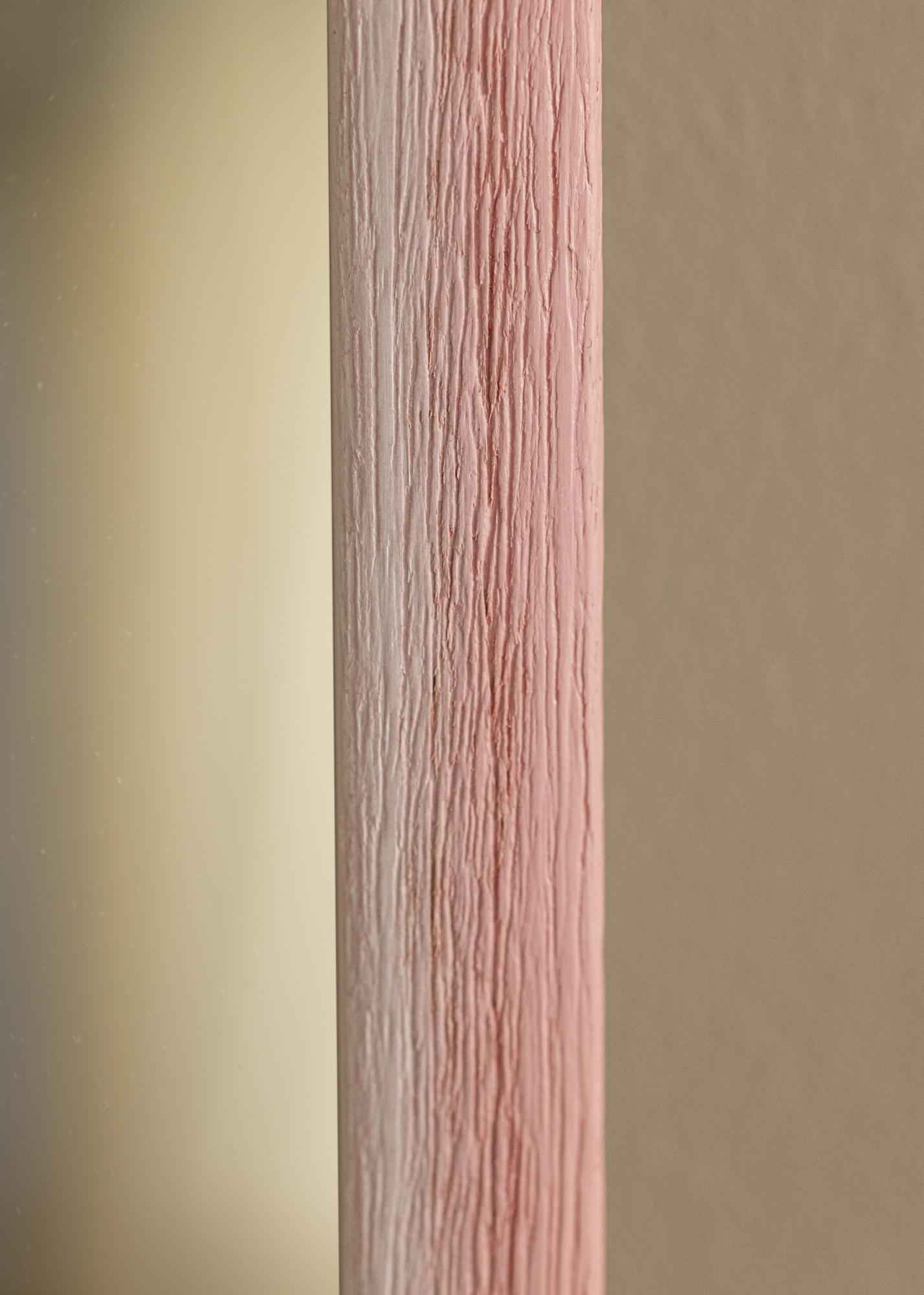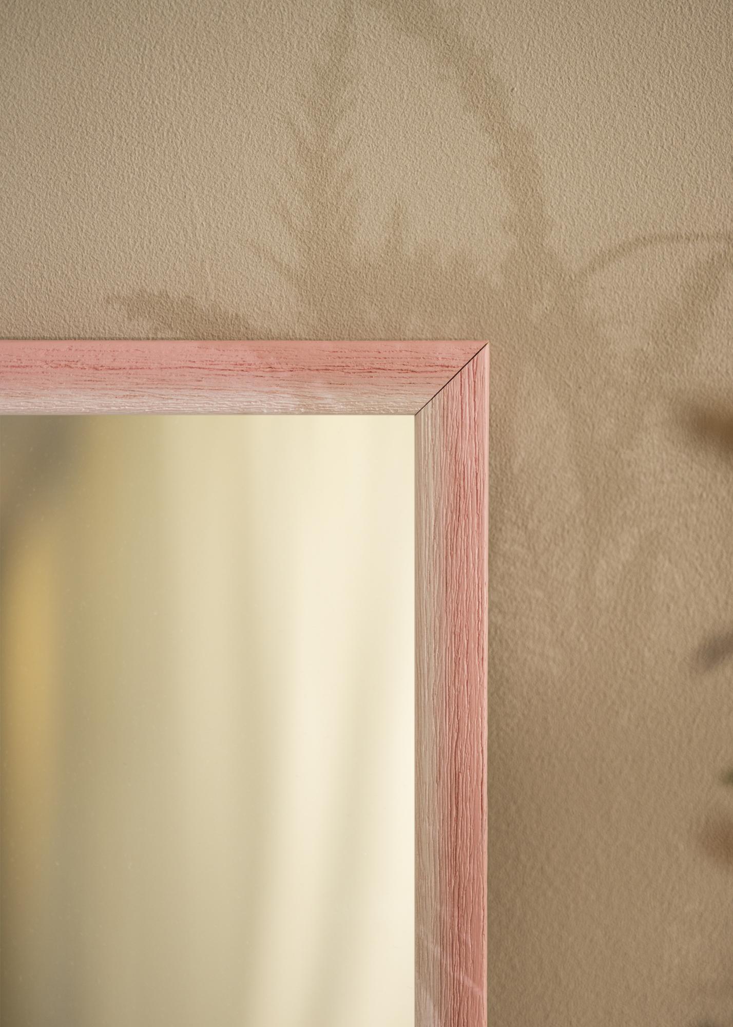 La cornice dello Specchio Cornwall Rosa è larga 23 mm e ha una profondità di 13 mm, il che le conferisce una sensazione solida e robusta. Realizzata in legno di ayous, la cornice mette in risalto una struttura di legno naturale con venature profonde che donano allo specchio un carattere rustico e terreno. L'effetto dipinto a mano è creato attraverso la morbida transizione di colore, che conferisce alla cornice un'espressione vivace e dinamica.