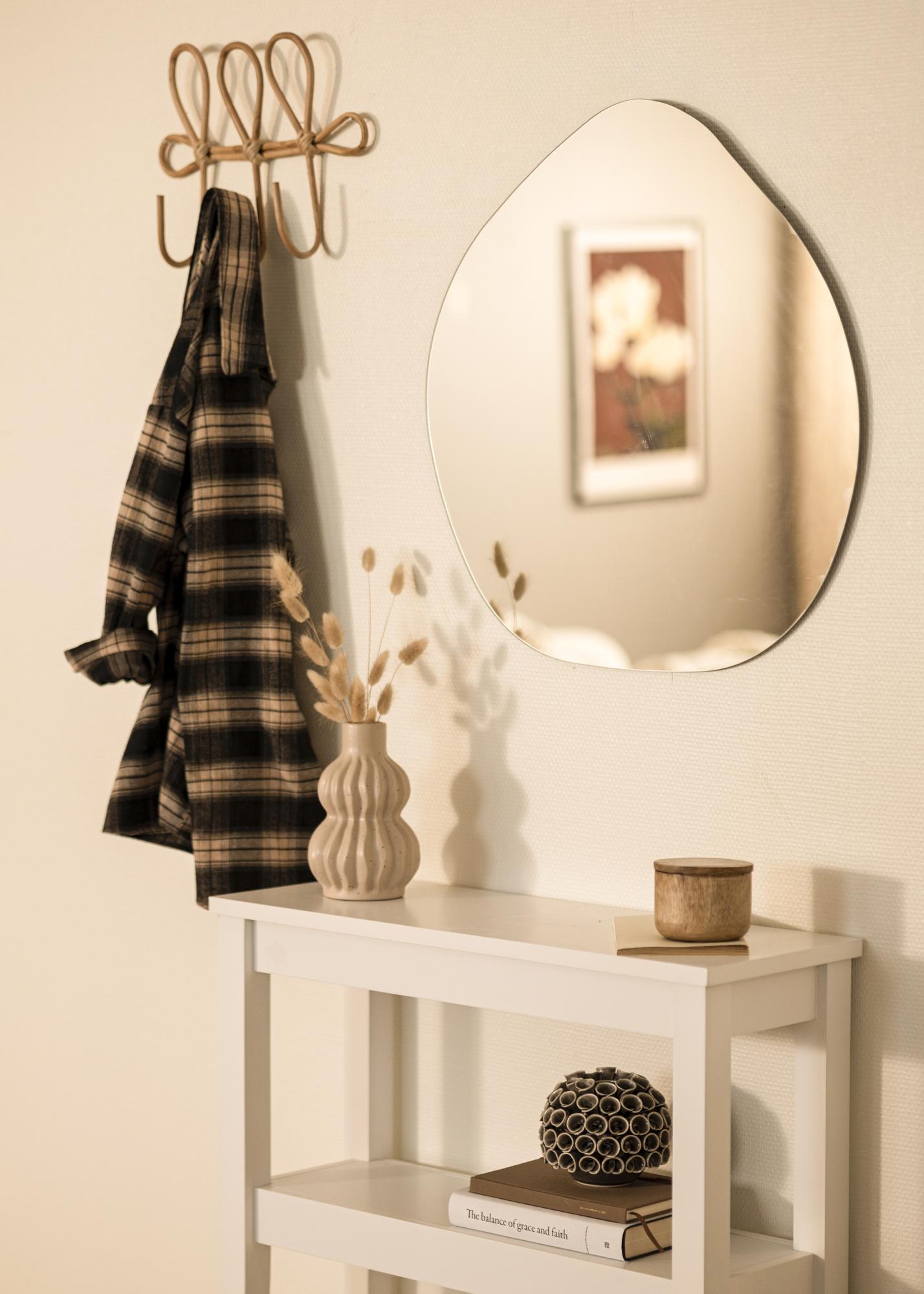 Questo specchio è progettato per essere versatile, con la possibilità di essere appeso sia in verticale che in orizzontale. Ciò ti dà la libertà di scegliere come si adatta meglio al tuo spazio, che si tratti dell'ingresso, della camera da letto o del soggiorno. La forma asimmetrica aggiunge un tocco moderno che si adatta a diversi stili di arredamento e crea un effetto visivo interessante.