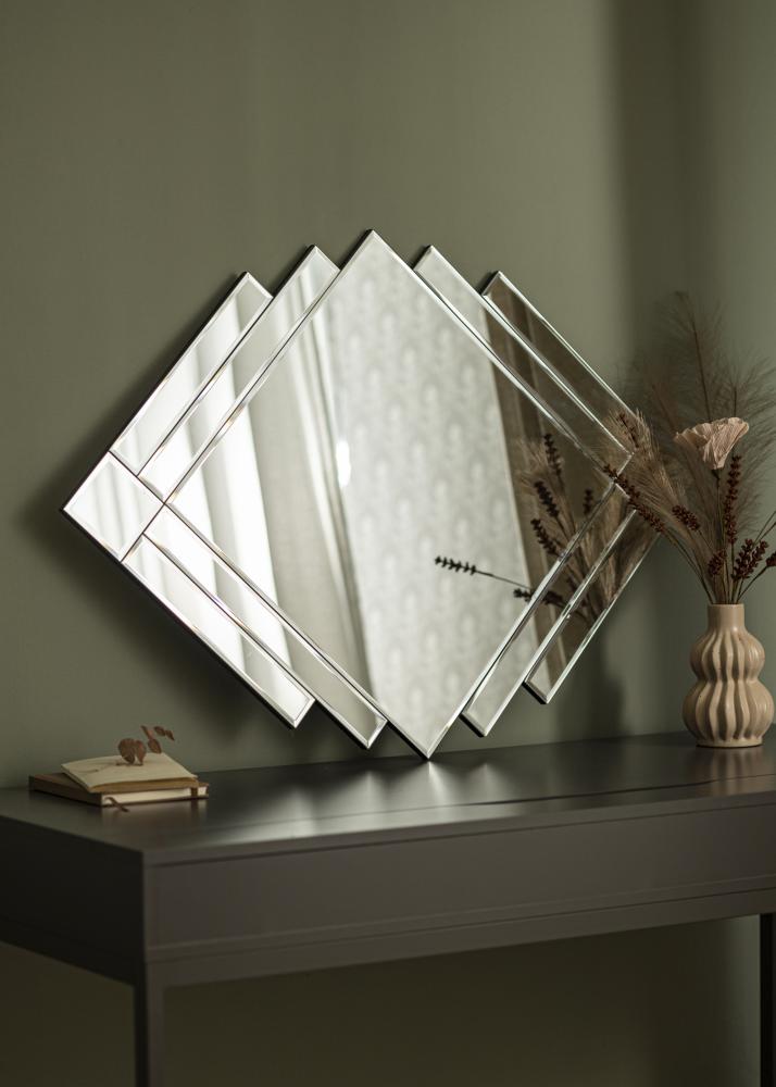 Scopri uno specchio che rompe gli schemi e aggiunge un tocco artistico alla tua casa. Con le sue sezioni di specchio multi-faccettate, questo specchio offre una forma insolita e accattivante che sicuramente susciterà discussioni. Le sue dimensioni di 71x99 cm lo rendono una meravigliosa attrazione ovunque sia collocato.
