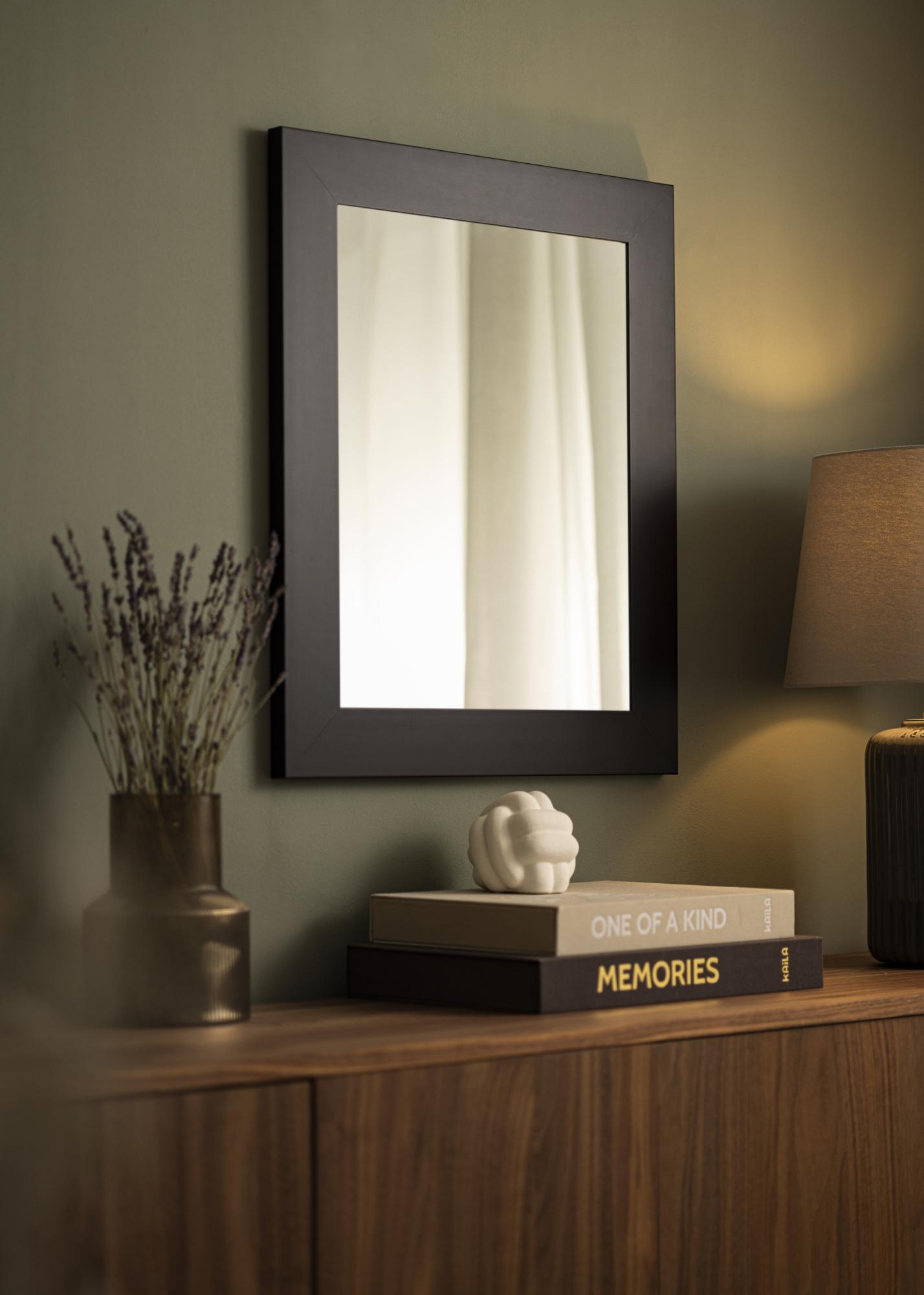 Questo specchio ha un elegante colore nero che conferisce un'impressione moderna e raffinata. La cornice larga 69 mm in legno di Ayos nero opaco contribuisce all'aspetto sofisticato dello specchio e lo rende un eccellente complemento per stili di arredamento sia classici che moderni. Con una profondità di 22 mm, lo specchio ha una costruzione robusta che assicura la sua durata e stabilità.