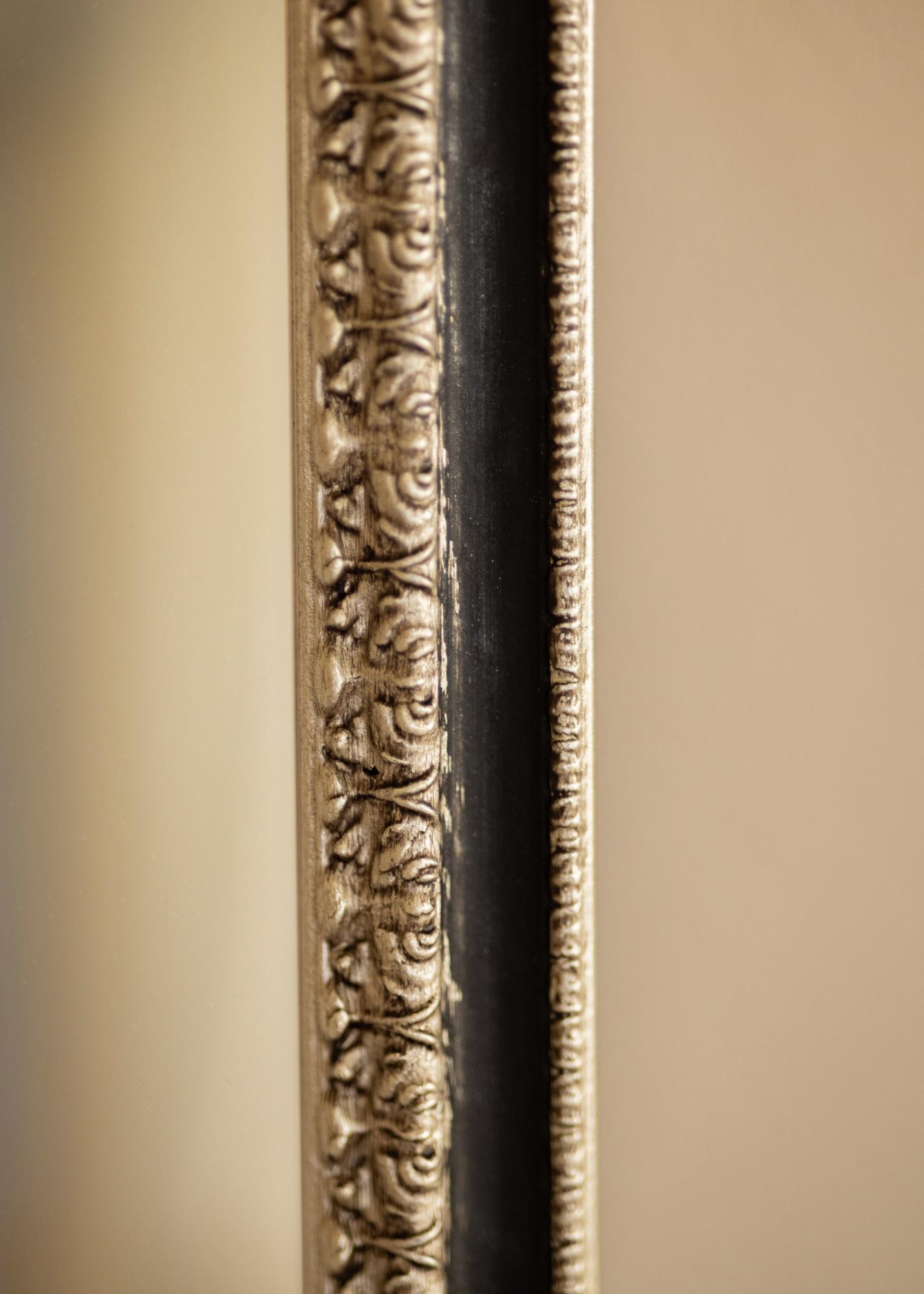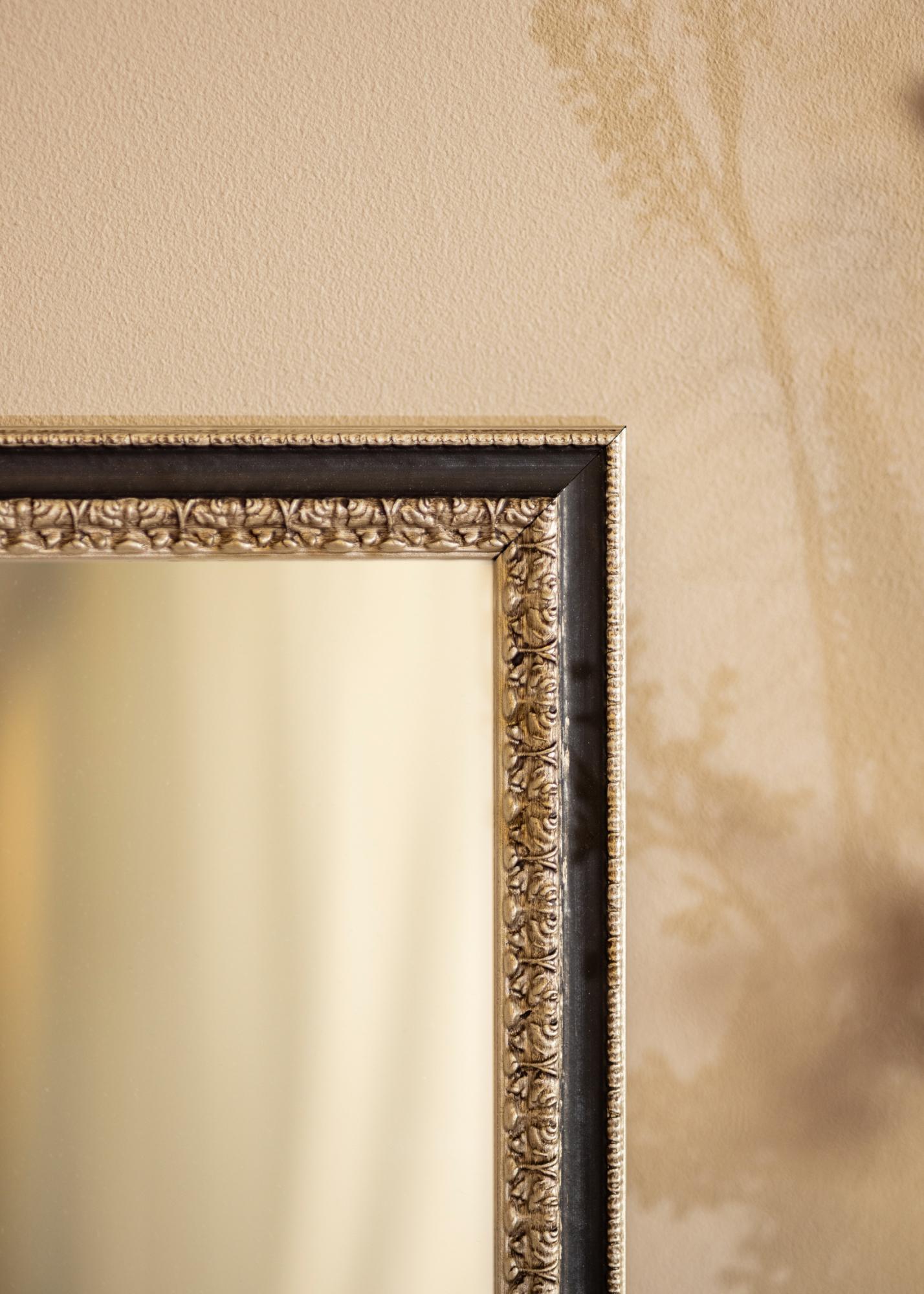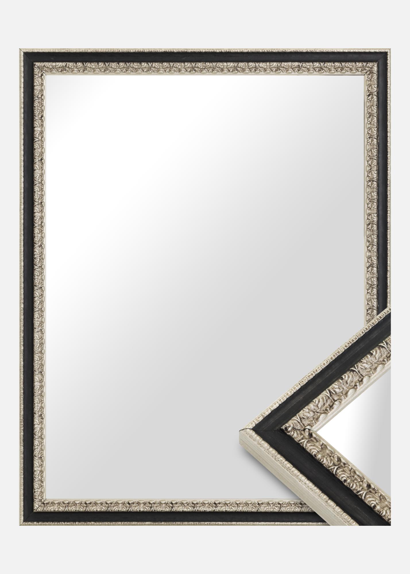 Specchio Drottningholm Argento II è uno specchio elegante e raffinato realizzato su misura. Con il suo bel colore argento e il bordo nero, diventa un elemento accattivante in qualsiasi stanza. La cornice larga 25 mm conferisce allo specchio un'inquadratura distintiva, mentre la profondità di 17 mm crea una sensazione di profondità e dimensione.