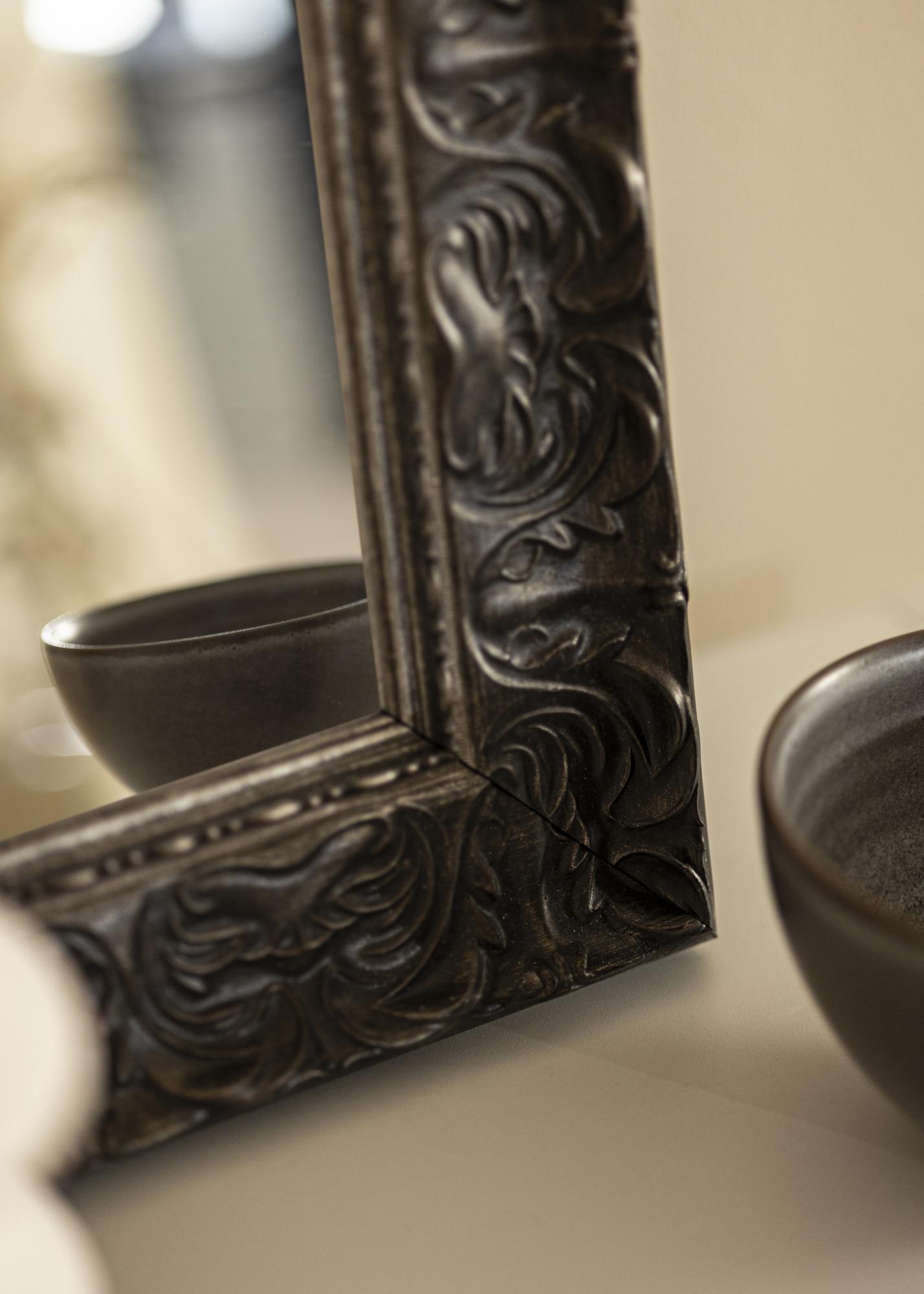 La cornice dello Specchio Durham Nero è larga 70 mm, il che conferisce allo specchio una sensazione robusta e solida. La profondità di 35 mm contribuisce alla sua stabilità e garantisce che si mantenga sicuro sulla parete. Realizzato in pino, questo specchio ha una finitura marrone antico scuro che gli conferisce un aspetto invecchiato, esaltandone il carattere classico e rustico.
