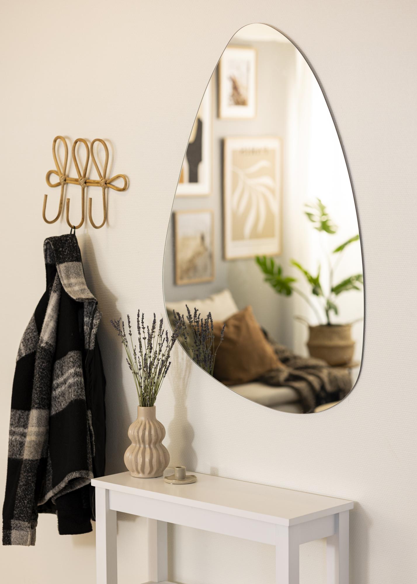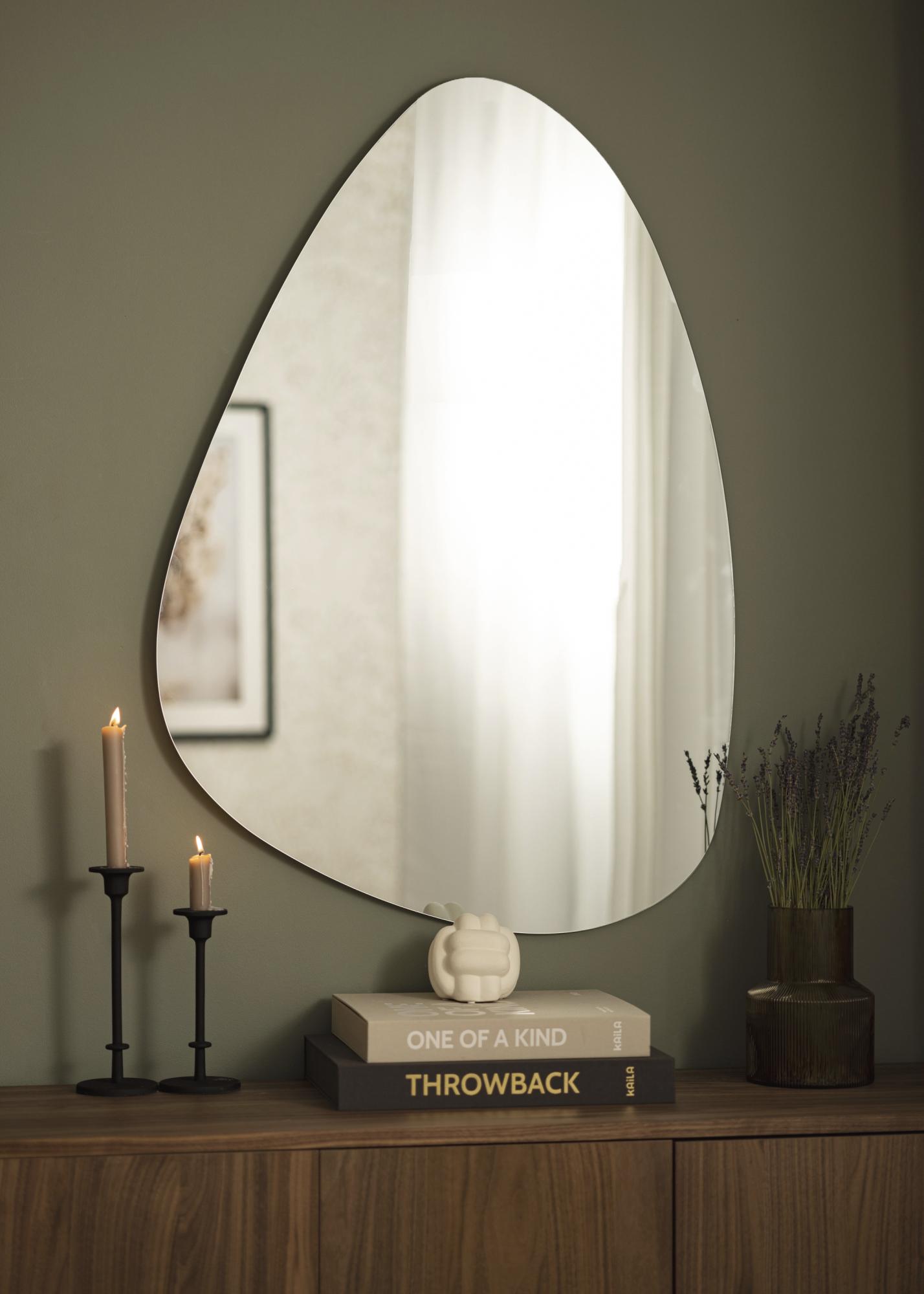 Questo specchio è perfetto per chi cerca uno specchio elegante in stile minimalista. La forma asimmetrica si combina con uno specchio sottile e bordi senza cornice, creando un'immagine complessiva molto elegante. Sul retro sono presenti supporti per il montaggio a parete.