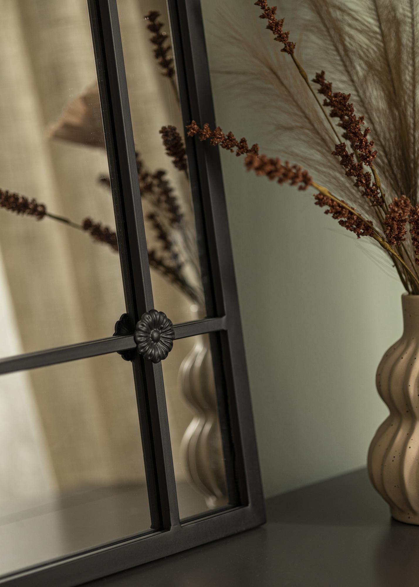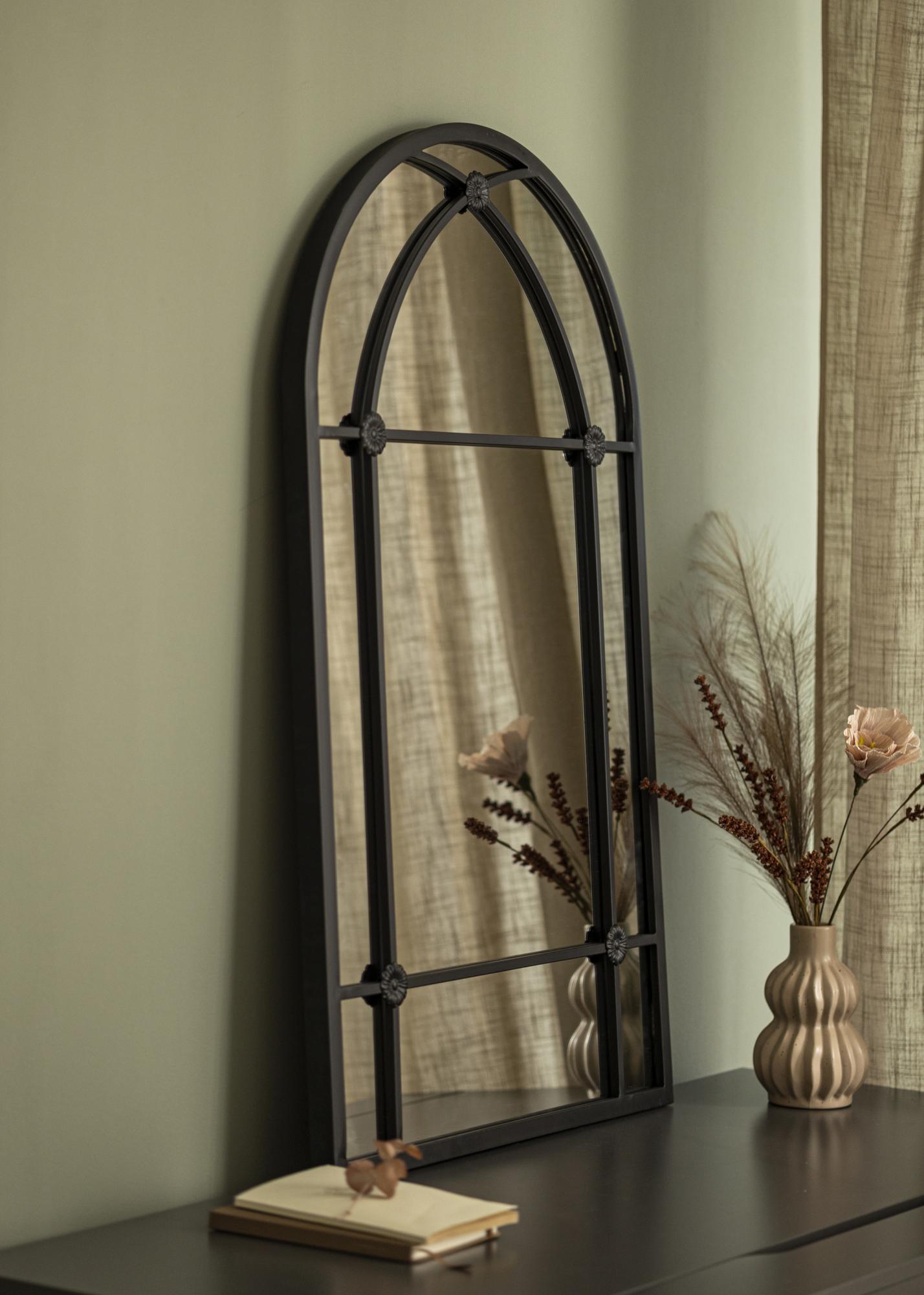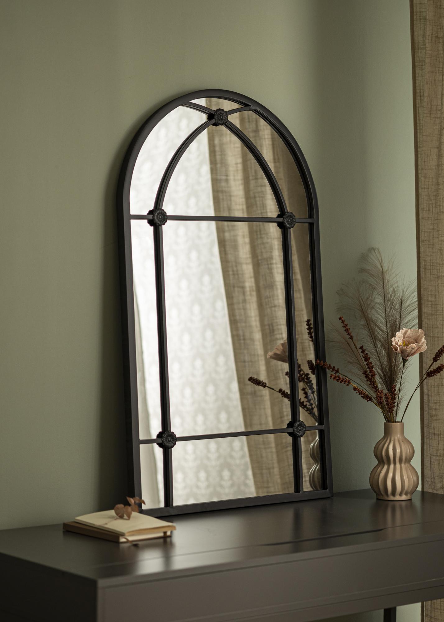 Con la sua silhouette a forma di arco e dettagliato lavoro in ferro, lo specchio ricorda le classiche finestre che danno una sensazione di profondità e spaziosità alla stanza. Non è solo un oggetto pratico per l'uso quotidiano, ma anche un dettaglio artistico d'arredo che cattura lo sguardo e contribuisce all'atmosfera della stanza.