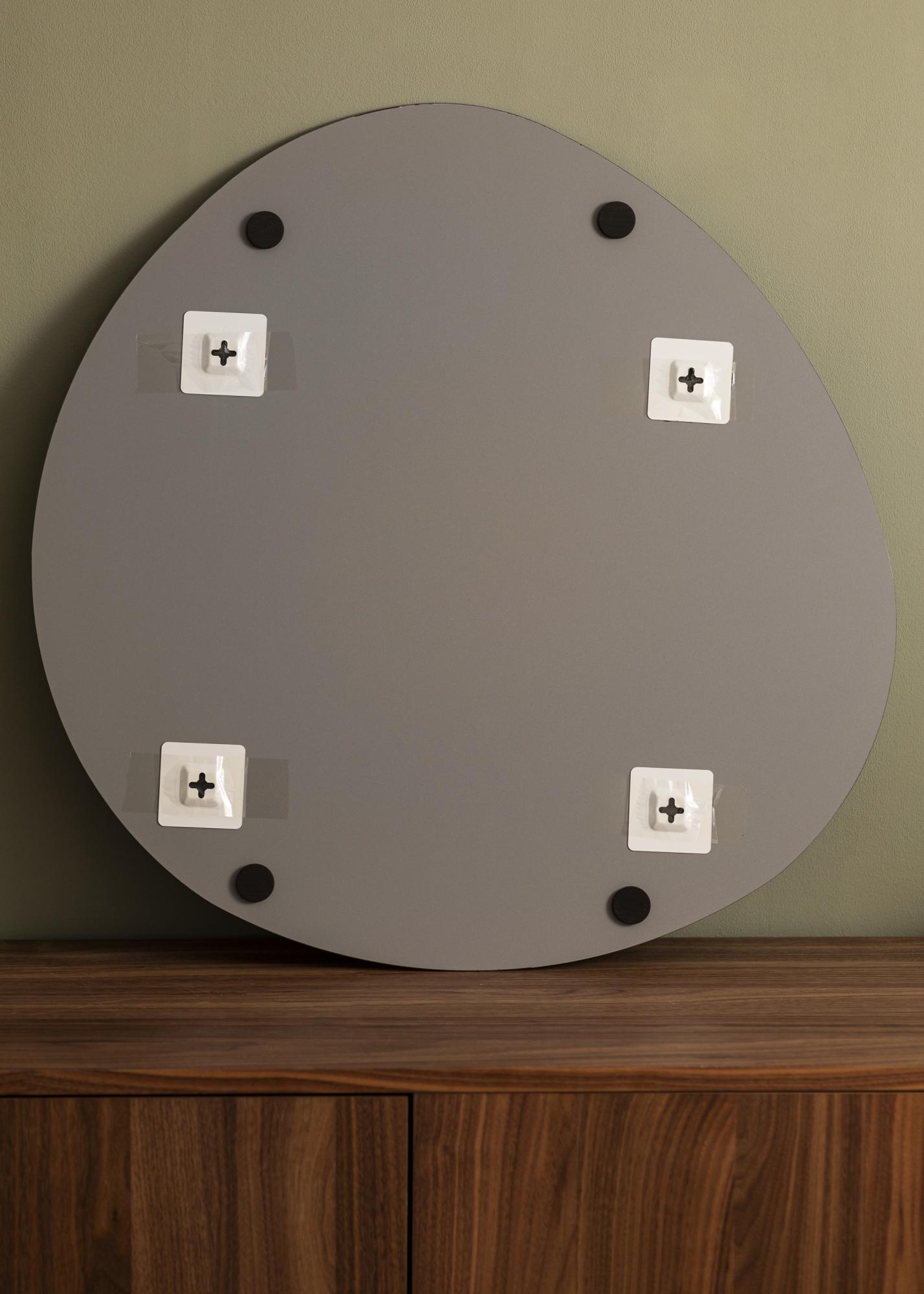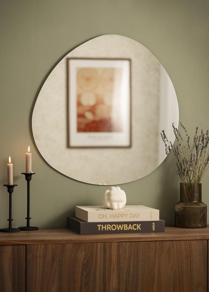 Scopri lo specchio elegante e versatile che diventa il punto focale naturale in ogni stanza. Con le sue generose dimensioni di 70x70 cm, questo specchio offre una funzione pratica e decorativa nella tua casa. La sua forma arrotondata con una leggera curvatura in cima dona una sensazione organica e rilassata alla stanza, mantenendo al contempo un'estetica moderna.