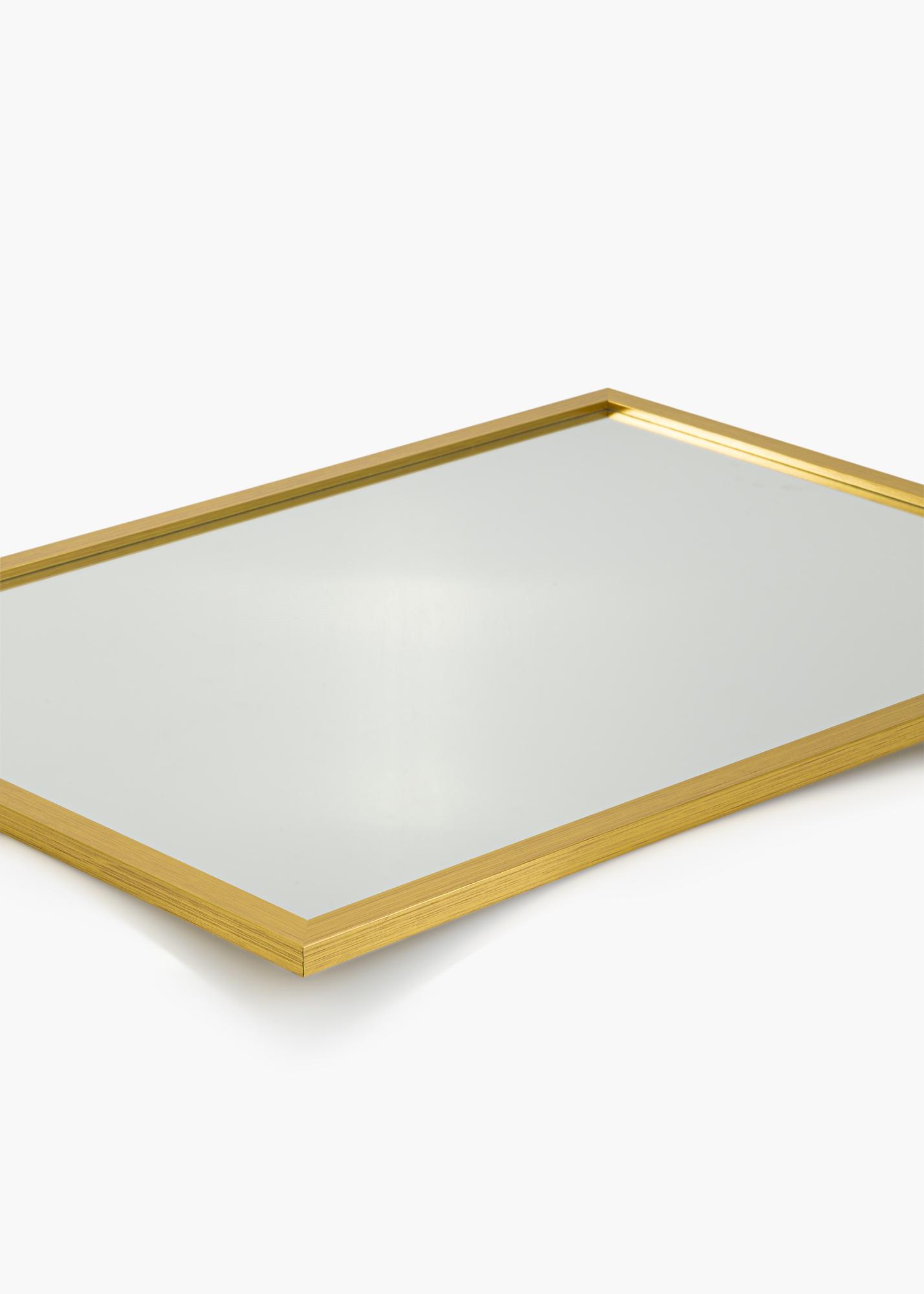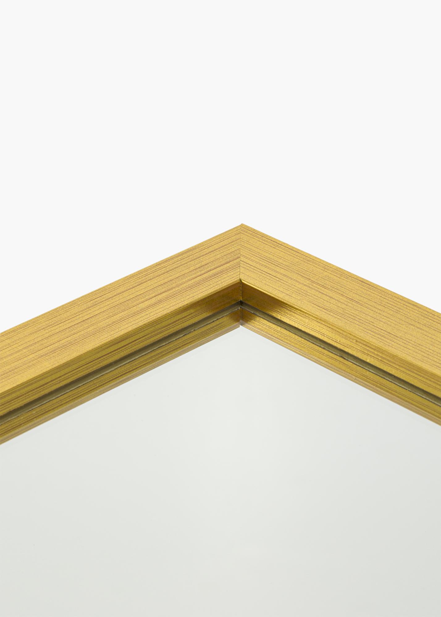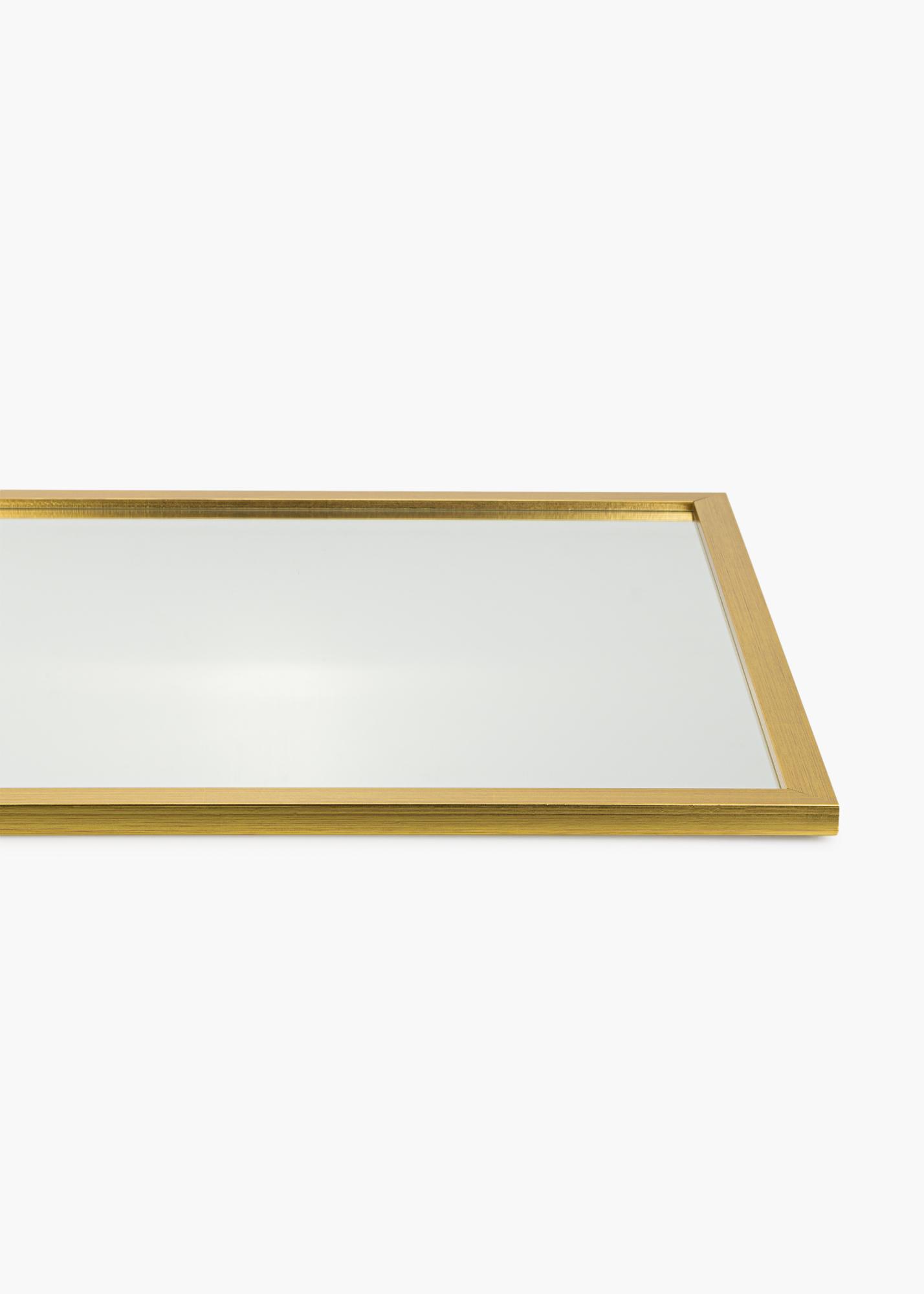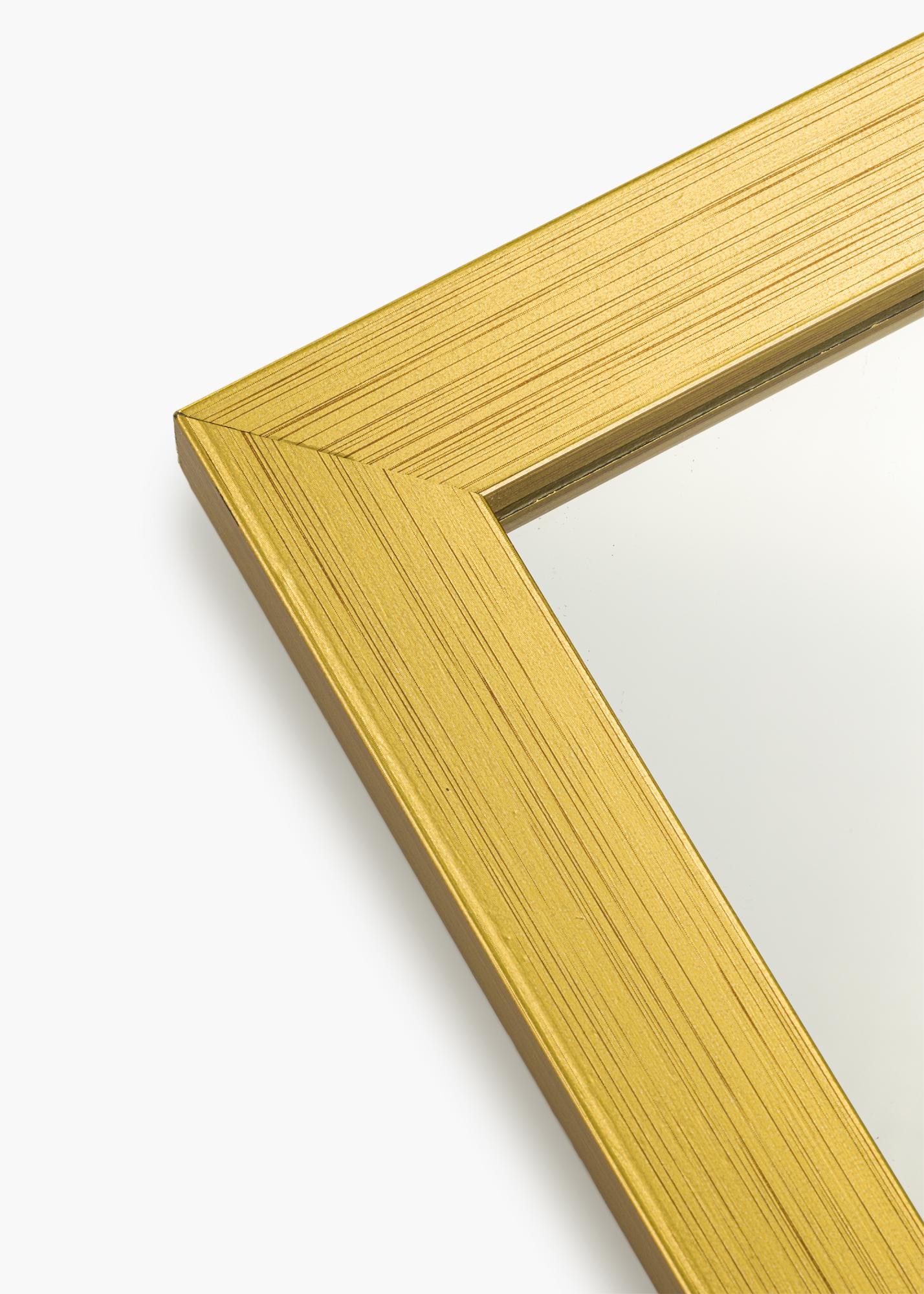 Gold Wood - quando la semplicità incontra lo sfarzo! Questo è uno specchio da parete con una cornice larga 22 mm realizzata in legno di ayo. La cornice ha un profilo diritto classico che conferisce all'intero specchio una sensazione essenziale, mentre il colore dorato dipinto aggiunge un tocco di eleganza.