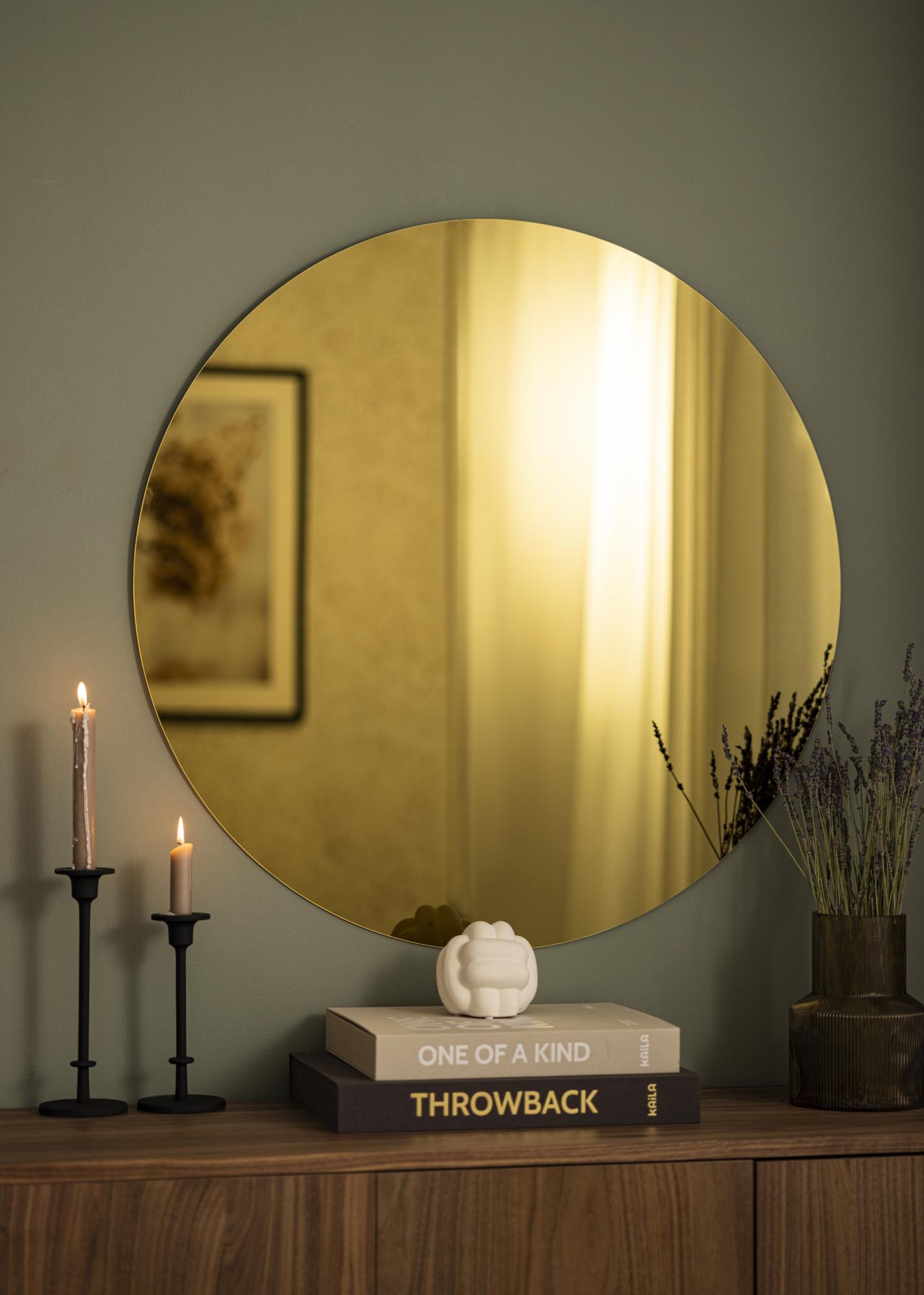 Uno specchio con vetro colorato è perfetto per case con uno stile d'arredamento moderno e minimalista. Questo specchio da parete rotondo ha un diametro di 70 cm.